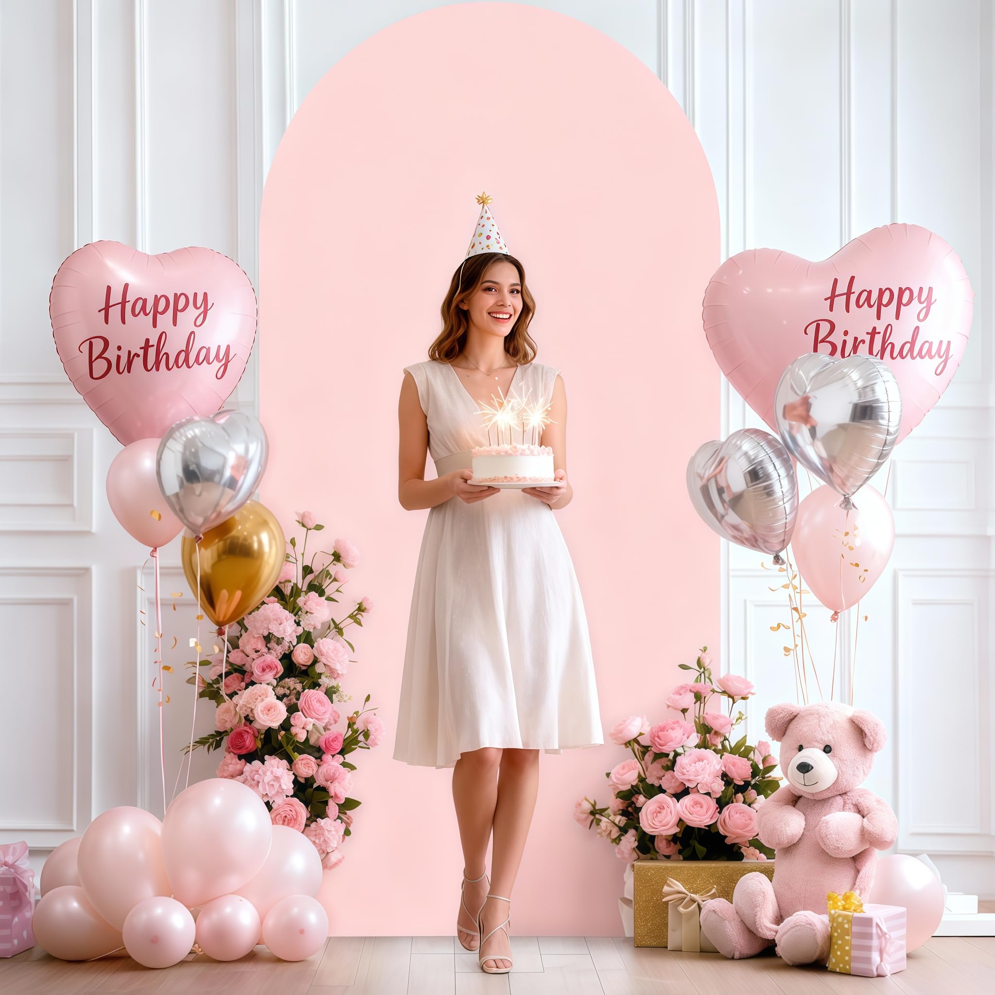 【Upgraded Stretchy Quality Material】- The round top arch background cover is made of premium quality polyester fabric, super soft and don't have any wrinkles or creases. No reflection, instantly creates a soft photo backdrop