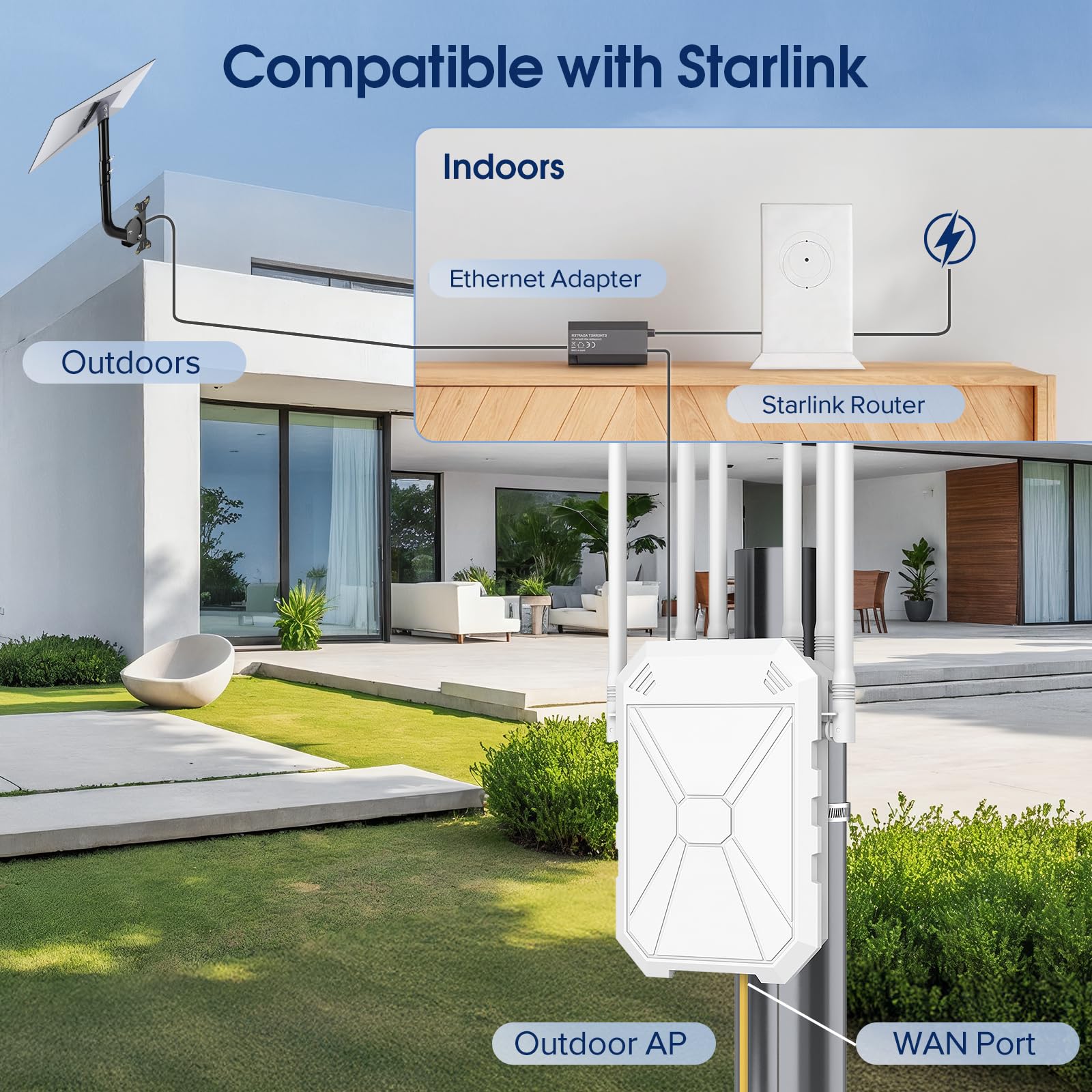 Perfect Outdoor WiFi Solution: perfect for homeowners with large properties, outdoor enthusiasts who stream or work outside, and smart home users with cameras and devices that need a stable, all-weather connection.