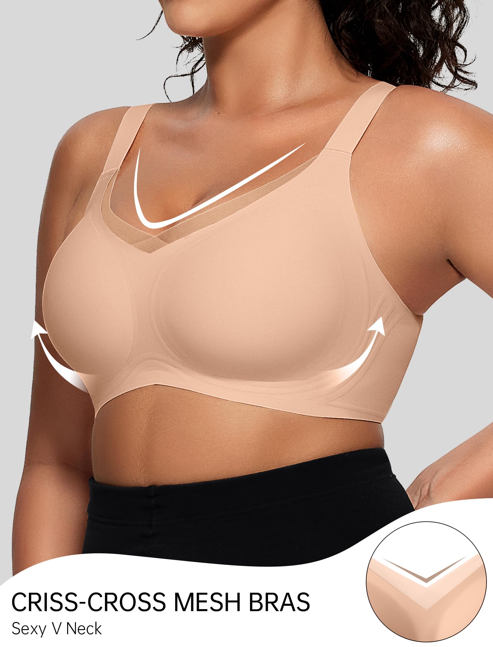 Sexy V Neck Bras for Women - The crossover bra is decorated with delicate criss-cross mesh detail which adds a touch of feminine elegance to the front side, making it truly flattering and charming in its aesthetic appeal. The deep V neck design accentuates and enhances your natural curves beautifully.