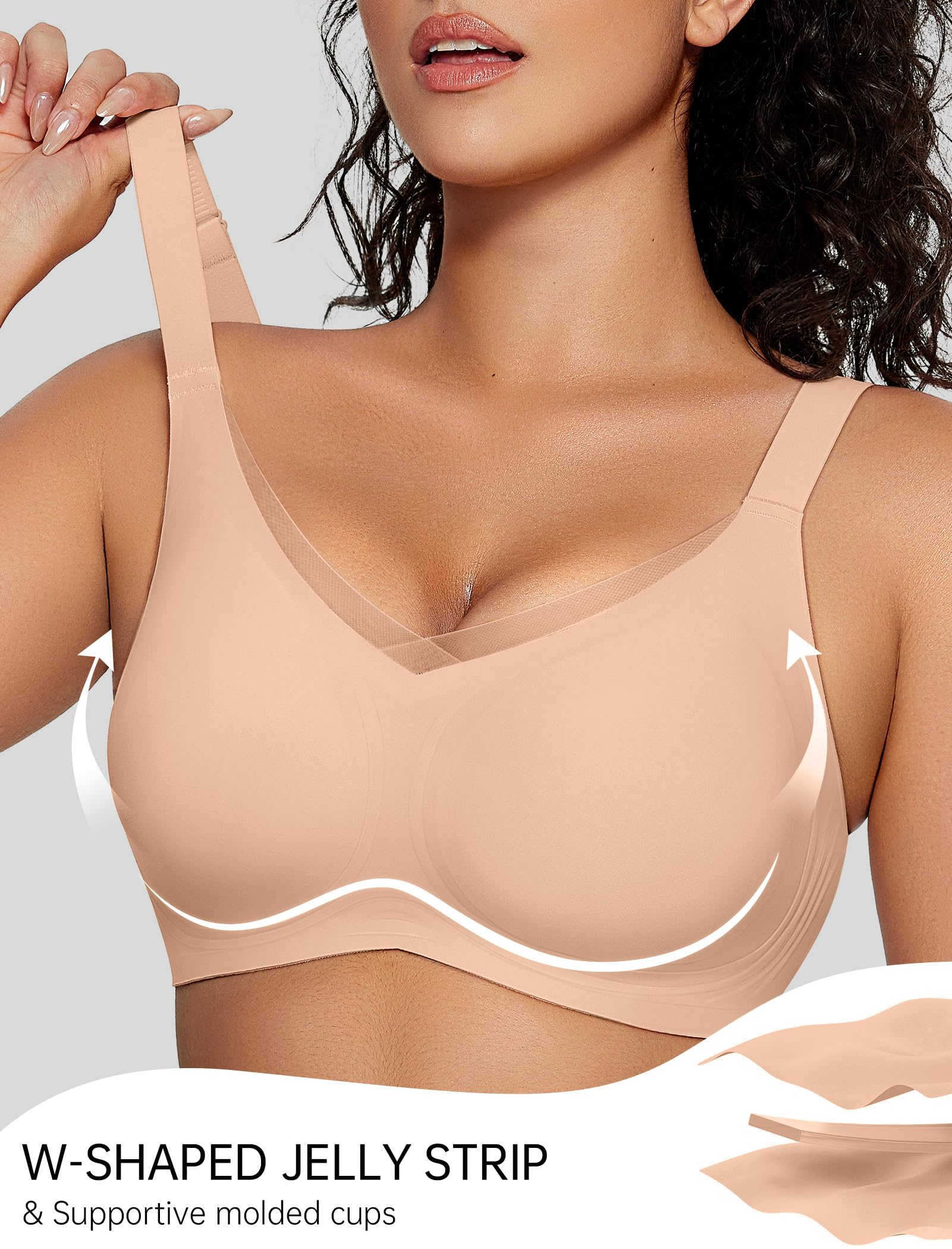Wireless Bras with Support and Lift - Our wirefree bras feature a W-shaped Jelly Band and Supportive molded cups around your breasts, giving a nice shape and adequate support for daily life. This comfort bra without underwire means no annoying wire stabbing you in the side, ensuring a buttery soft feeling all day long.