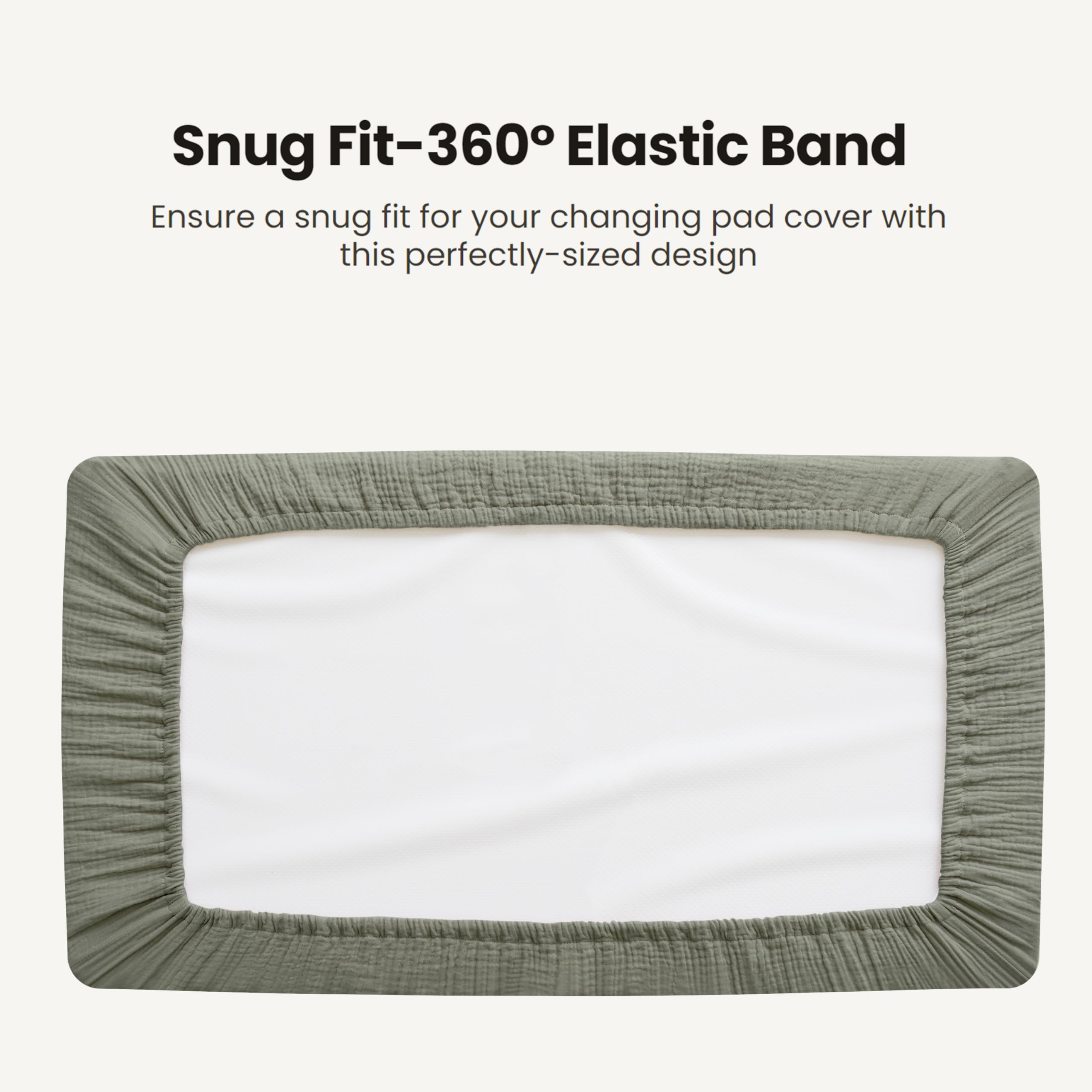Snug Fit: Our muslin changing pad cover measures 32β x 16βand features a fully encased 360-degree elastic. This design ensures a snug and secure fit on your changing pad. Say goodbye to slipping covers during diaper changes!