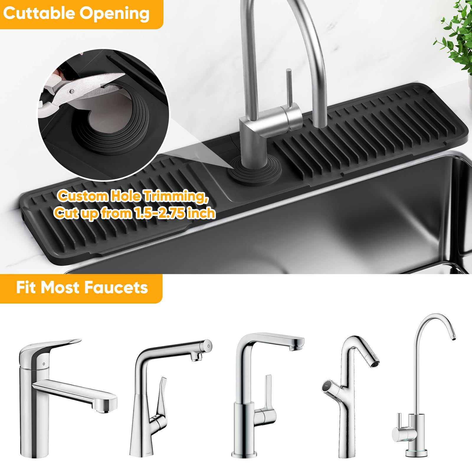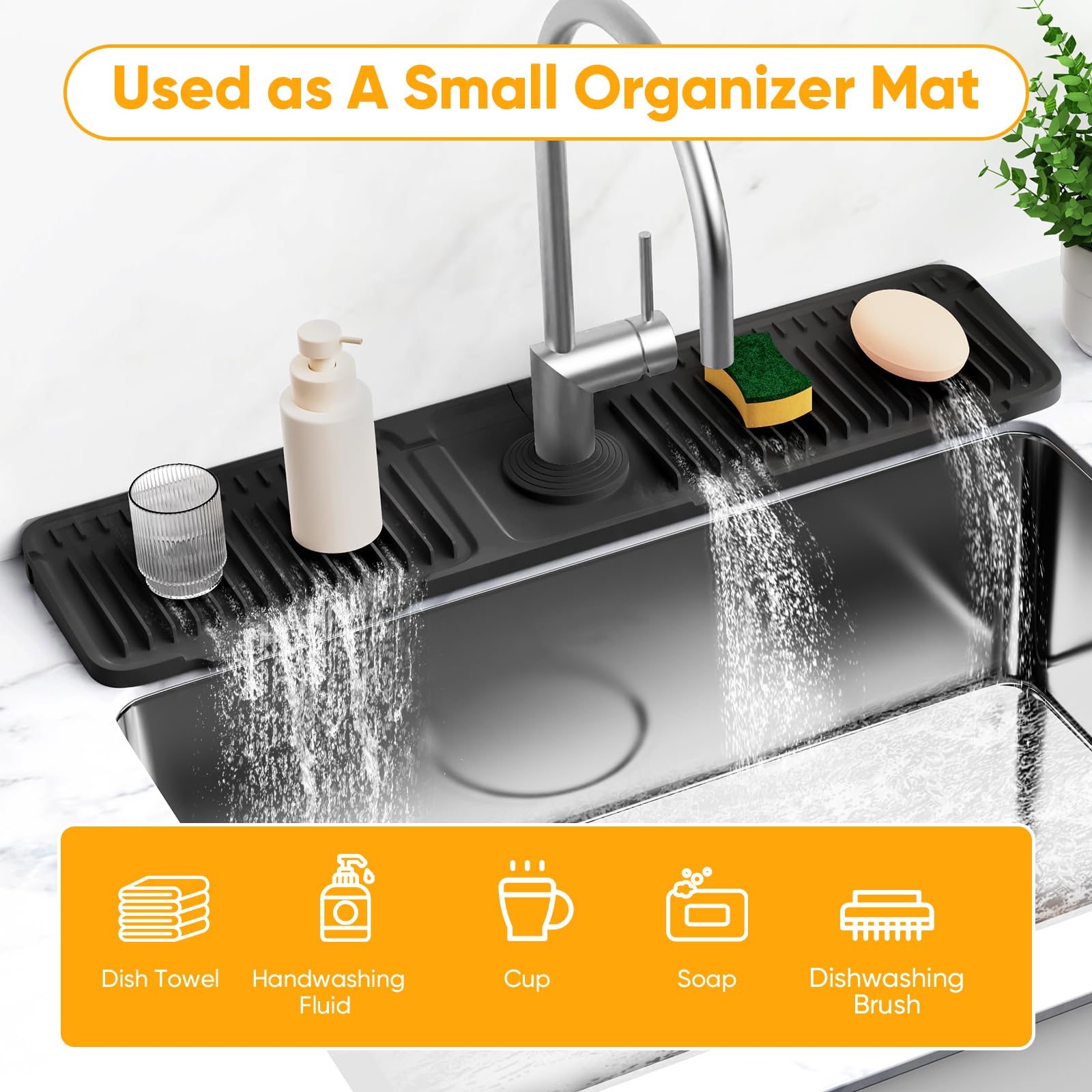 ๐ใ24In Ultra Long DesignใThe regular tidy splash guard is only 14in. Snoquir newly upgraded sink mats for around faucet measures 24in. Extra long designed to fit most sinks! Besides after the ordinary splash guard for kitchen sink area is used, the water will still soak the countertop. But Our kitchen faucet mat has automatic drainage function to keep countertops clean with ease!