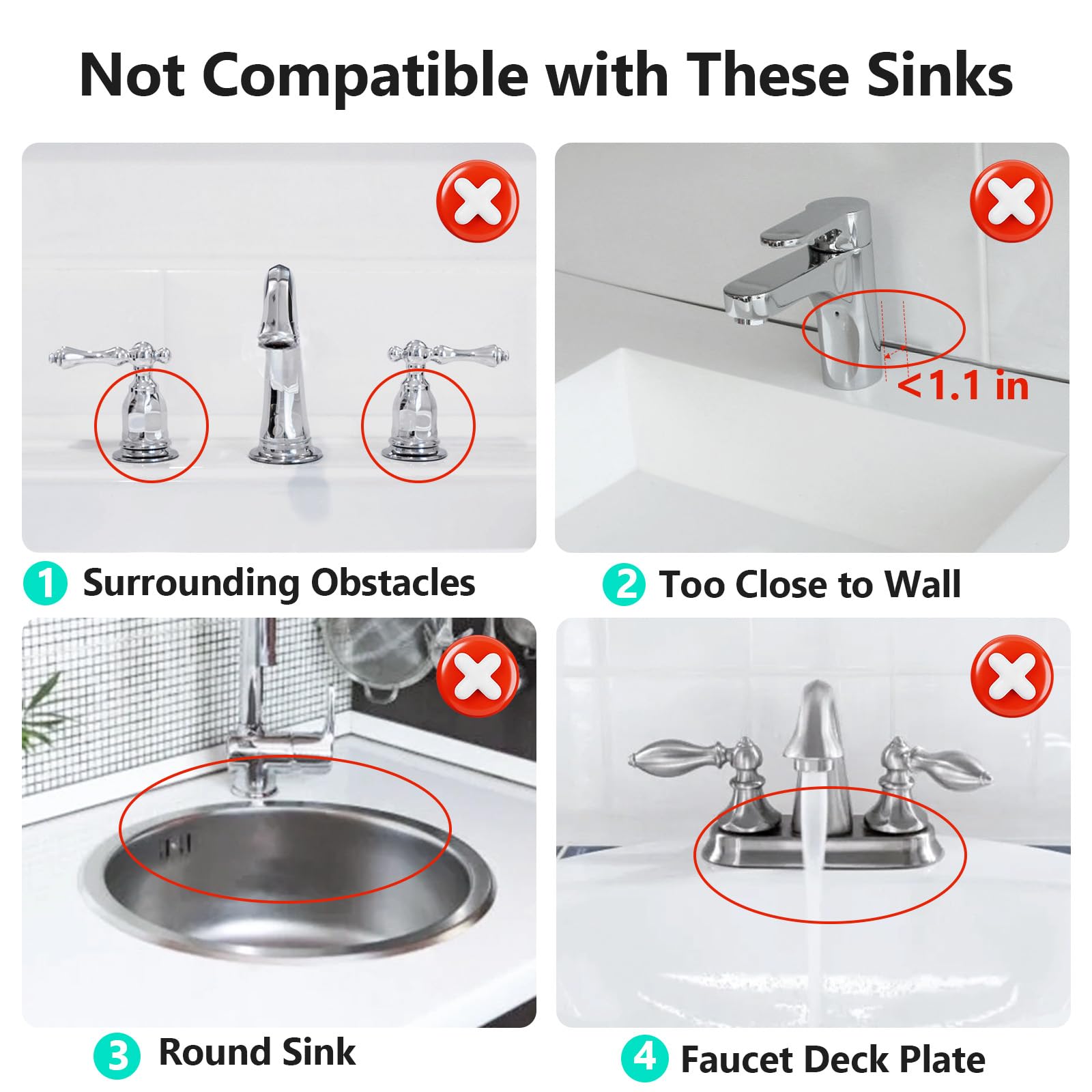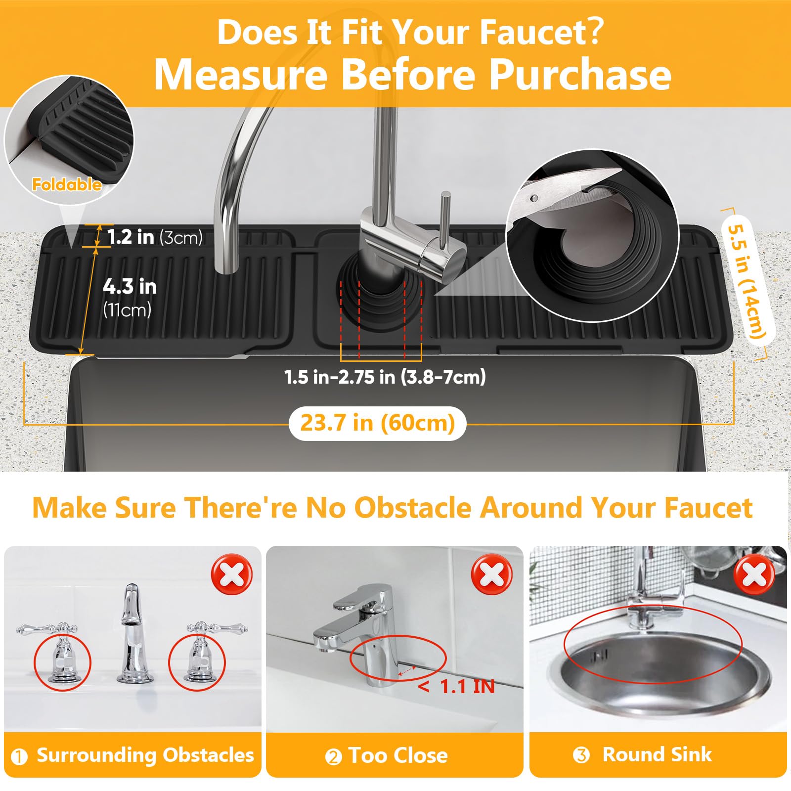 ๐ฉใ๐ ๐ฎ๐ฅ๐ฅ๐ฒ ๐ ๐ฅ๐๐ญ ๐๐" ๐ฑ ๐.๐" ๐๐ซ๐๐ ๐๐๐ช๐ฎ๐ข๐ซ๐๐ใPlease Keep a ๐๐" ๐ฑ ๐.๐" clear space around your faucet. free of built-in filters, or hand soap dispensers, unless you are willing to cut the mat to let it can be laid flat. If you need to cut, You can put a couple slash marks in the product back to go around the soap dispenser. It is simpler and keeping the water out. (But Cutting Requires Skill) So it's best to ensure there are no obstacles, NOT Applicable for curved rims sink, side sink, round sink, thick faucet base.