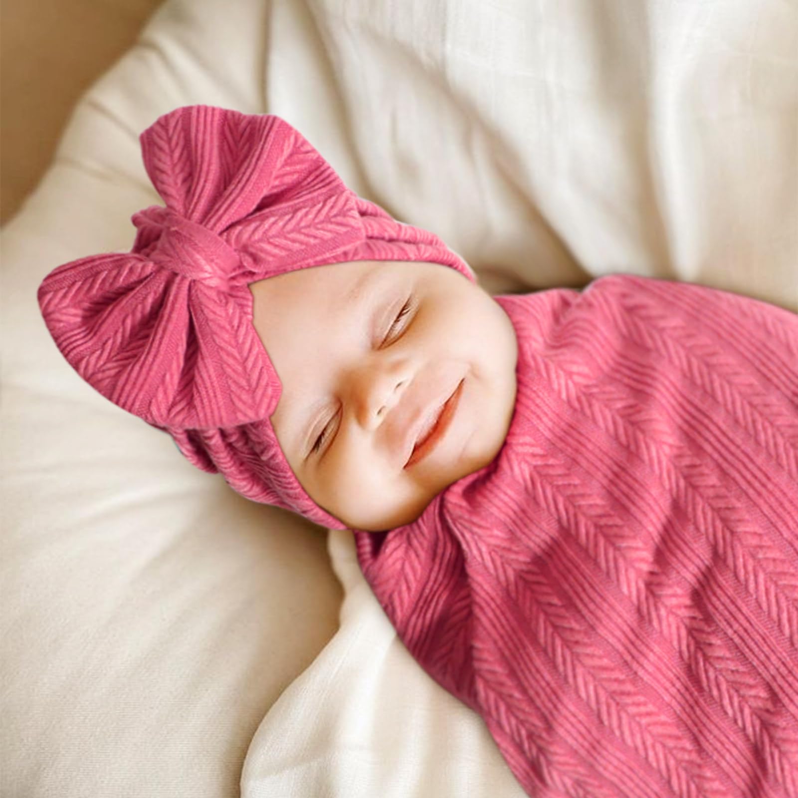 💝【Practical and Fashionable Design】- This comfortable newborn swaddle set is designed with a textured knit to make it more comfortable for your baby to wear without slipping. Wheat ear design is the trend this year! Our baby blanket has no zippers, no Velcro or snaps to protect your baby from any potential risks, no danger to your small angel.