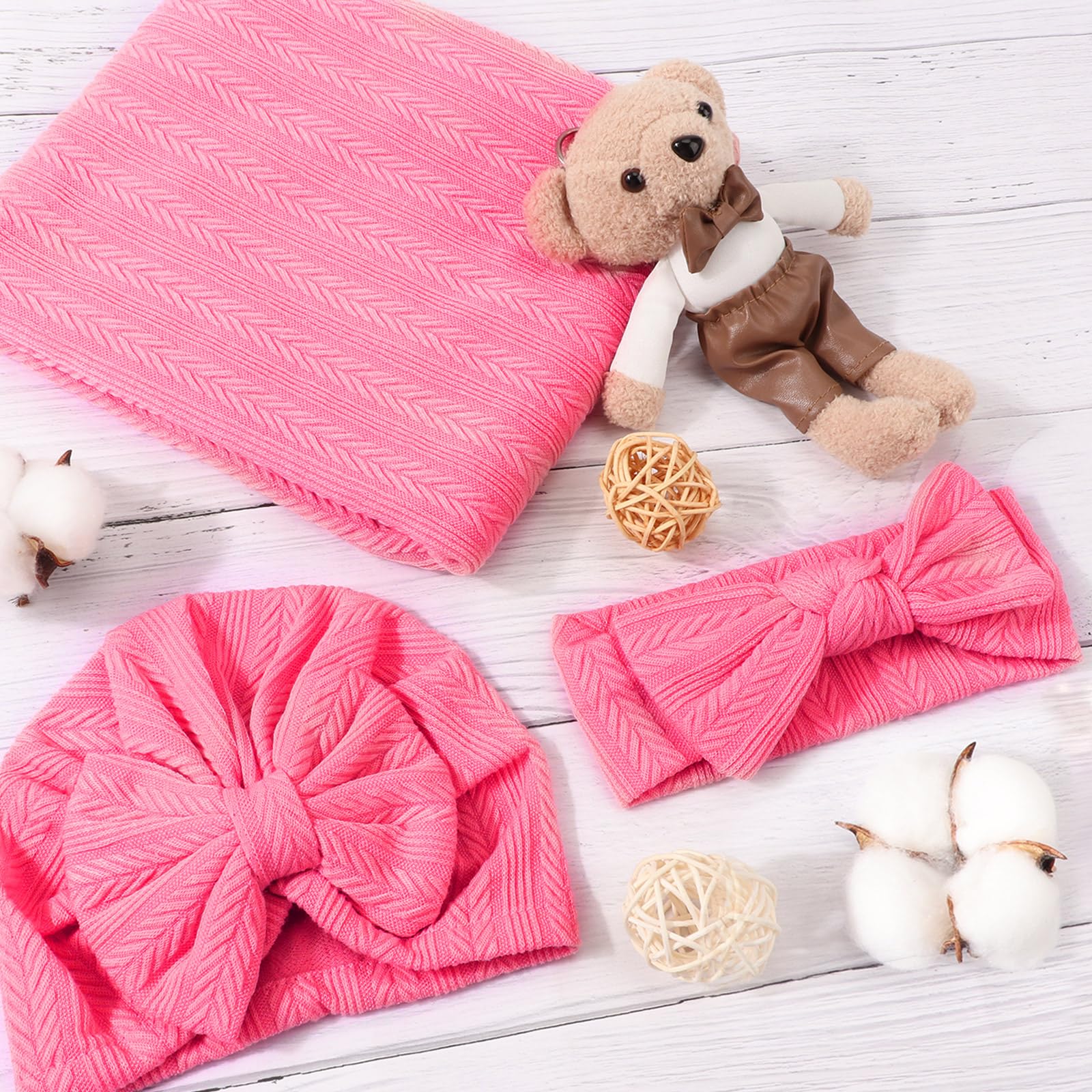 💝【Soft Fabric】- This baby blanket and headband hat set are made of super soft, stretchy and comfortable fabric. Warm and comfortable for baby's delicate skin. They contain no any harmful chemicals and are gentle on even the most sensitive skin.