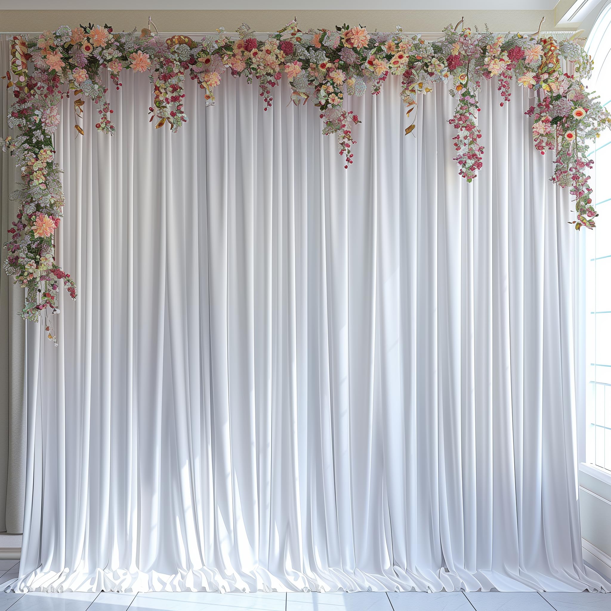 Versatile for Every Celebration —— Our white backdrop curtains are perfect for baby showers, bridal showers, birthday parties, weddings, graduation ceremonies, dessert tables, anniversaries, stages, ceremony, receptions, YouTube, photo studio, Halloween, Christmas, New Year's Eve parties, daily use, and other special decoration. and more. They also serve as an excellent choice for photoshoots backgroud. The backdrop curtains can also be used as a window curtain