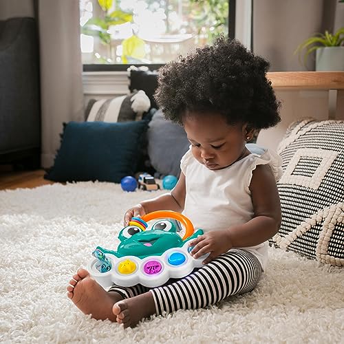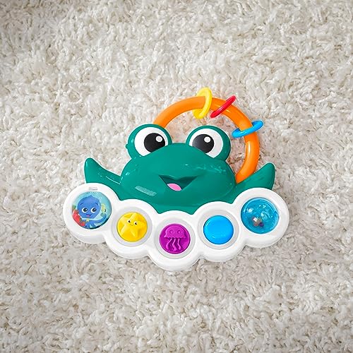 The Baby Einstein Ocean Explorers Neptune’s Busy Bubbles Sensory Activity Toy engages baby’s eyes, ears, and fingers with lights, music, textures, sounds, and more.