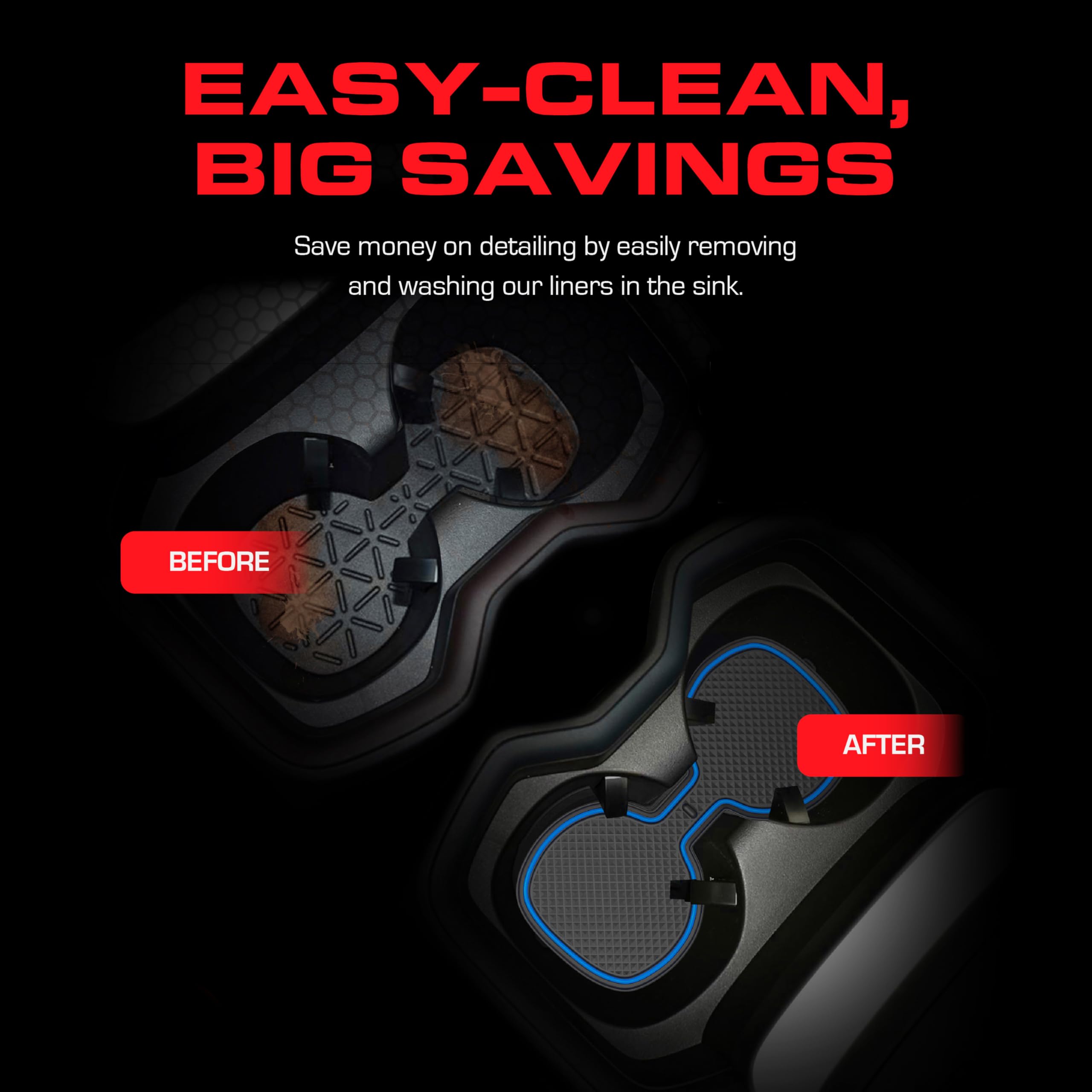 Save Time & Money - interior car washes and detailing are expensive. With our Toyota compatible accessory cup holder liners you can keep your car looking new & clean! The non-slip bottom clings to your cupholders and console areas so they stay in place and the built in handle makes for easy removal and cleaning