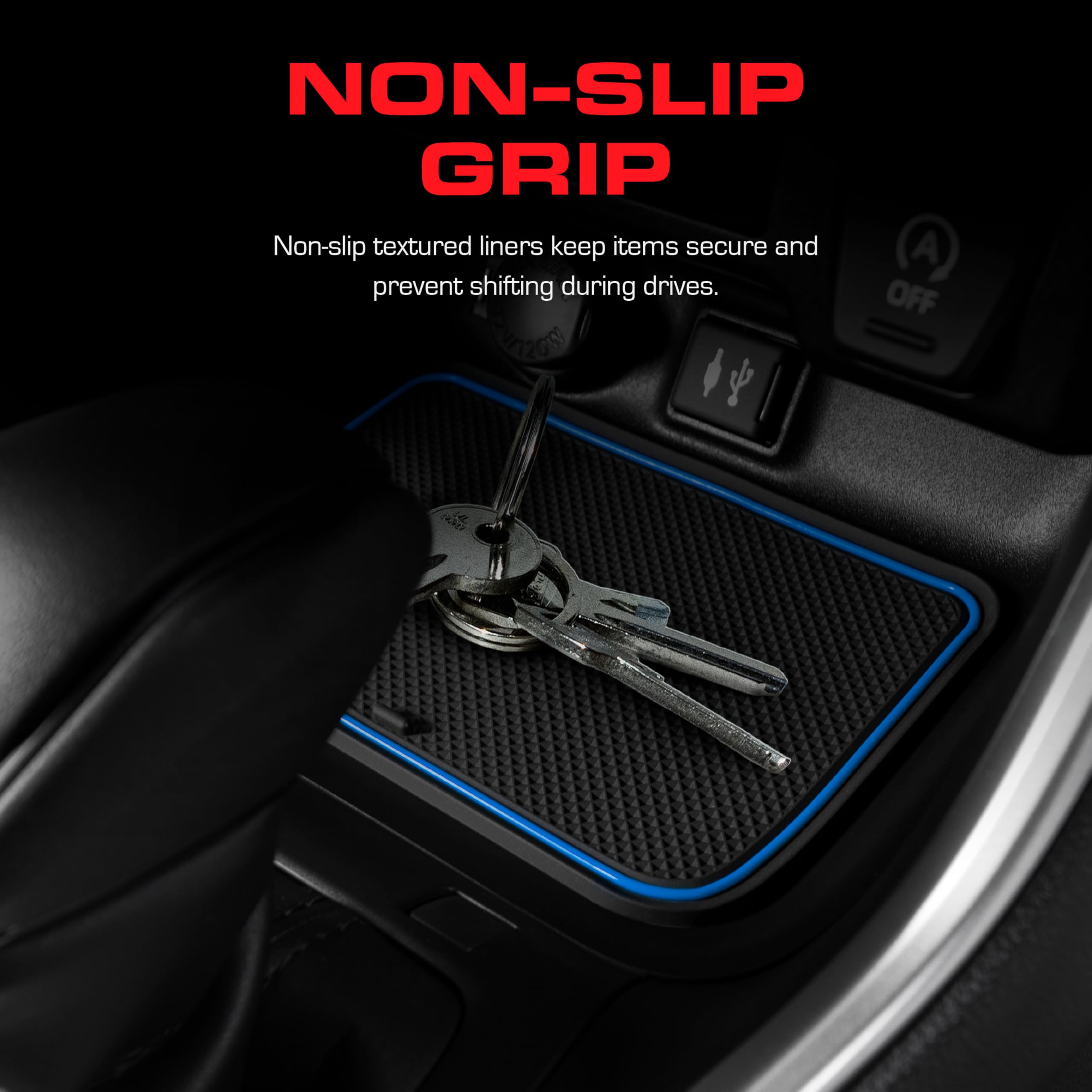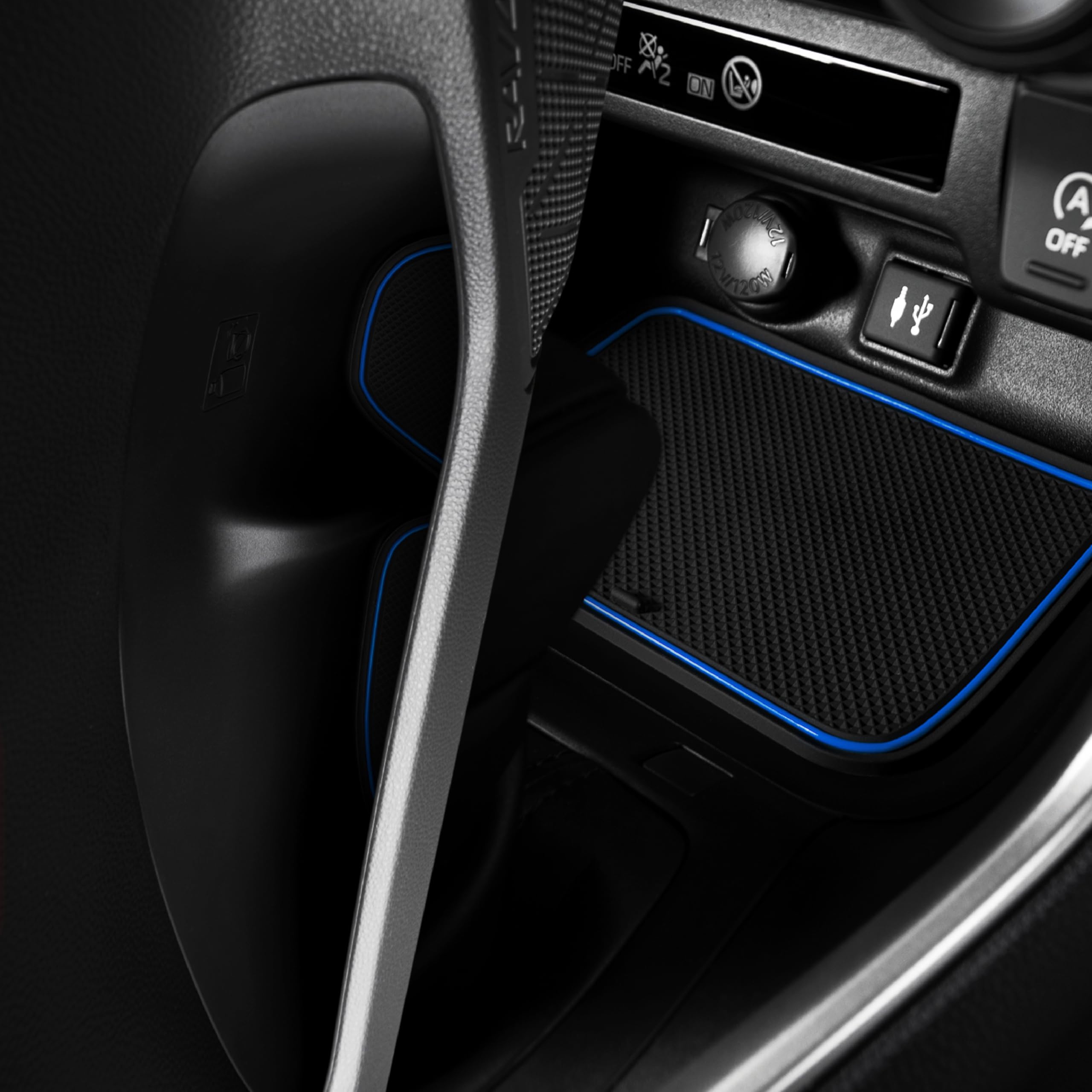 RAV4 Compatible Accessories that keep your car looking new - Our custom car interior liners that fits RAV4 and cup holder mats are engineered in the USA with a unique design that offers a precise fit you won't find elsewhere, perfectly placed tab handles for easy removal, a sleek mods look without logo designs that gather grime, and a patented all-weather material that withstands heat up to 170 degrees without the “rubber tire” smell