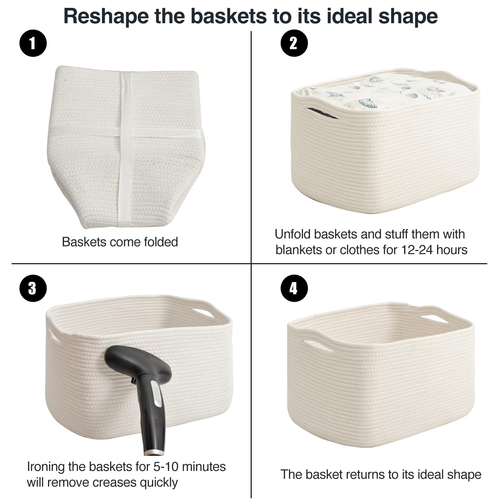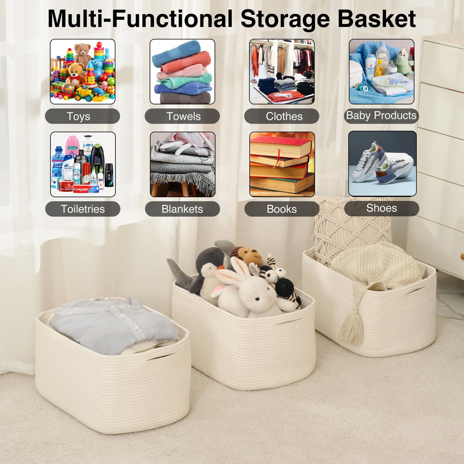 Multi-functional Design: Our white storage basket is the perfect solution to tackle everyday clutter. It accommodates various items such as clothes, toys, books, and cosmetics, helping you maintain a tidy and organized living space