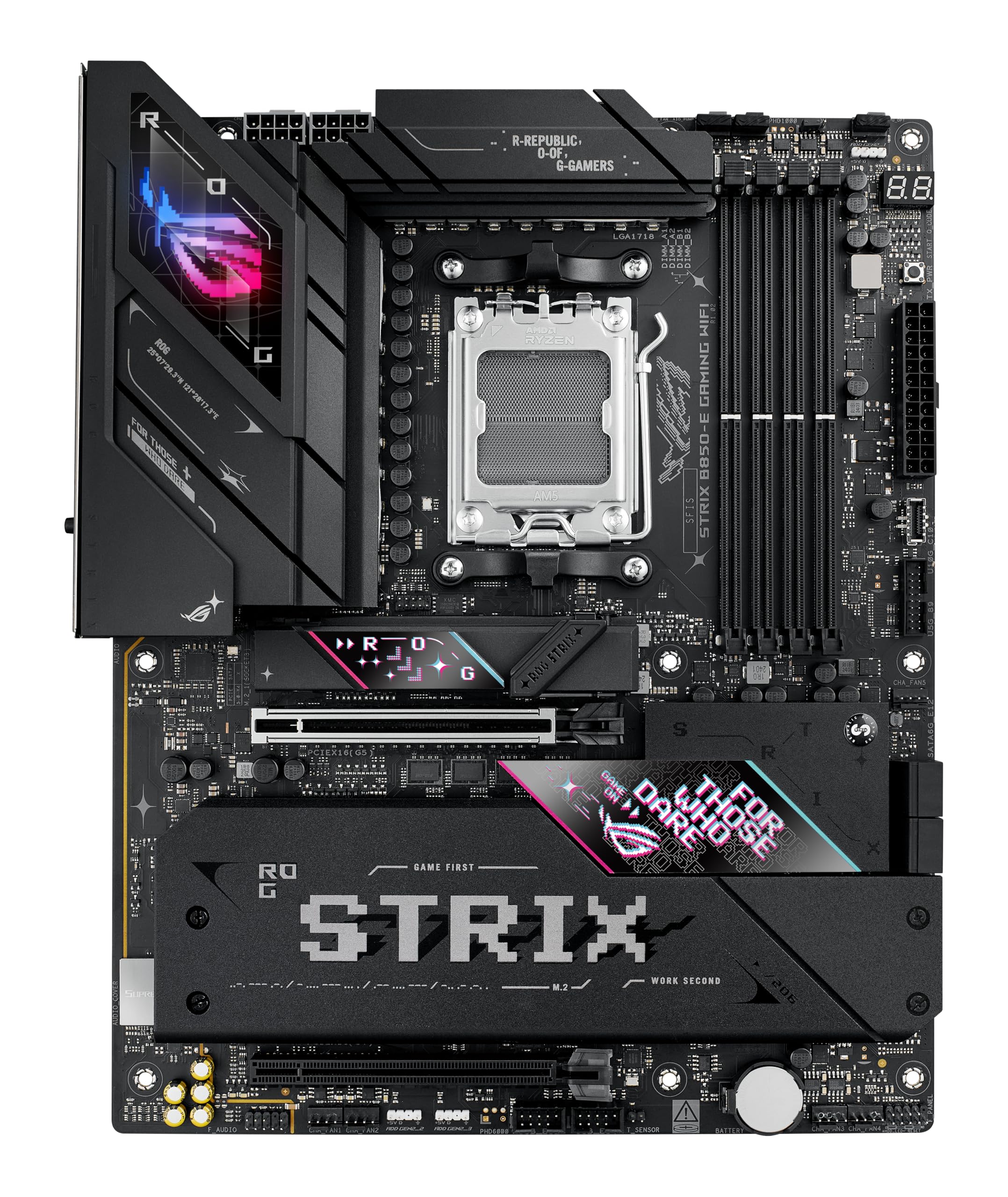 Upgrade to S-tier with the ASUS ROG STRIX B850-E GAMING WIFI! This AMD AM5 ATX motherboard boasts 16+2+2 power stages, PCIe 5.0 x16 SafeSlots, five M.2 slots, DDR5 with AEMP, and WiFi 7 with Q-Antenna, USB4, USB 20Gbps Type-C with PD 3.0, Aura Sync, AI Advisor, Dynamic OC Switcher.