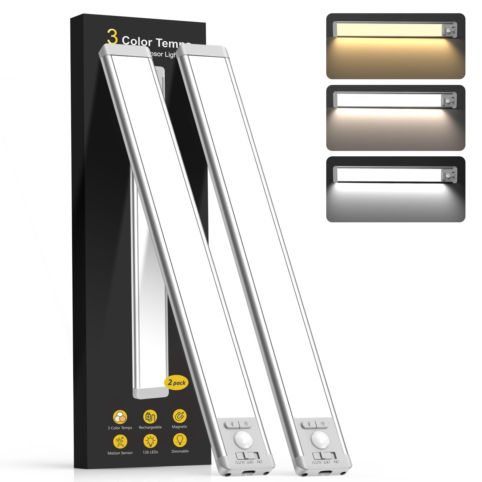 3 Color Temps and Dimmable Closet Lights: The cabinet lights are bright and eye-protection, thanks to 126pcs energy-saving LEDs and a non-glare frosted cover. In addition, our motion sensor light indoor has 3 color temperatures (white light, warm light, natural light) and 5 levels of brightness. So the dimmable under cabinet lighting allows you to brighten them for task like meal preparation and dim them for a motion sensor night light without waking other people up at midnight