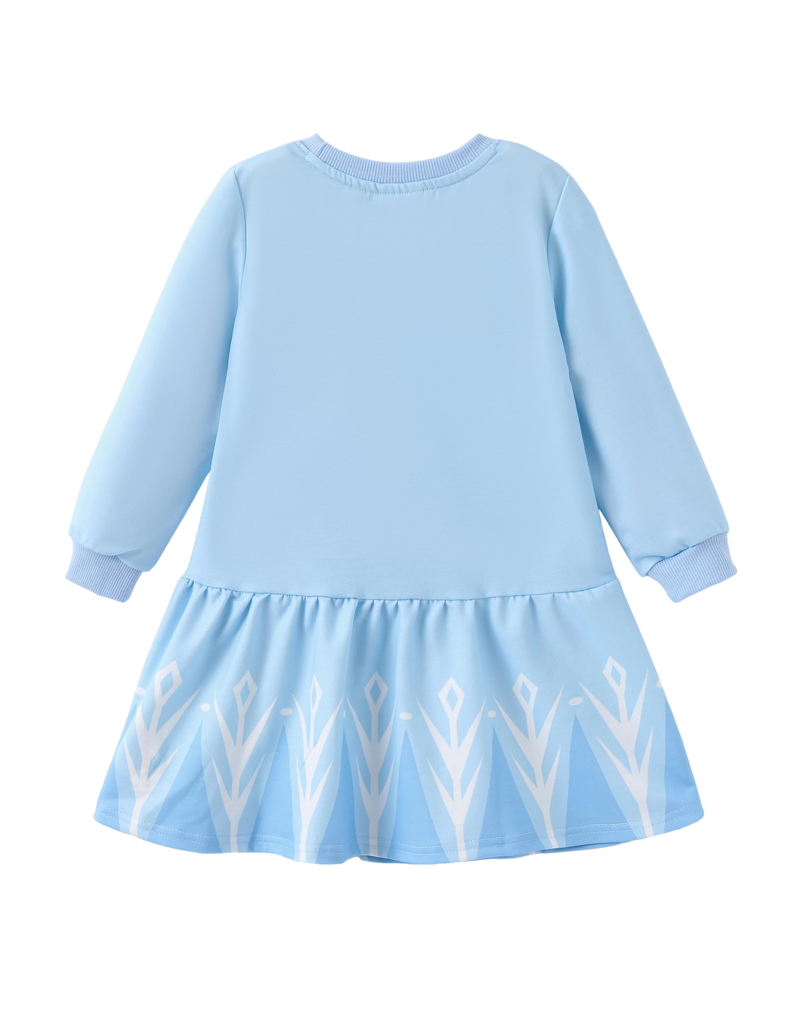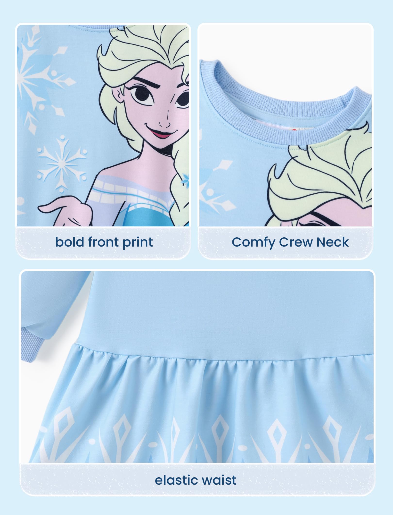 Charming & Unique Design: This Elsa dress combines the cozy warmth of a sweatshirt with the playful elegance of a mesh skirt. The top features a vibrant print of Elsa in her iconic blue gown, showcasing her signature braid and enchanting smile. The soft ice blue background and shimmering snowflakes symbolize her connection to winter fantastic and her free spirit