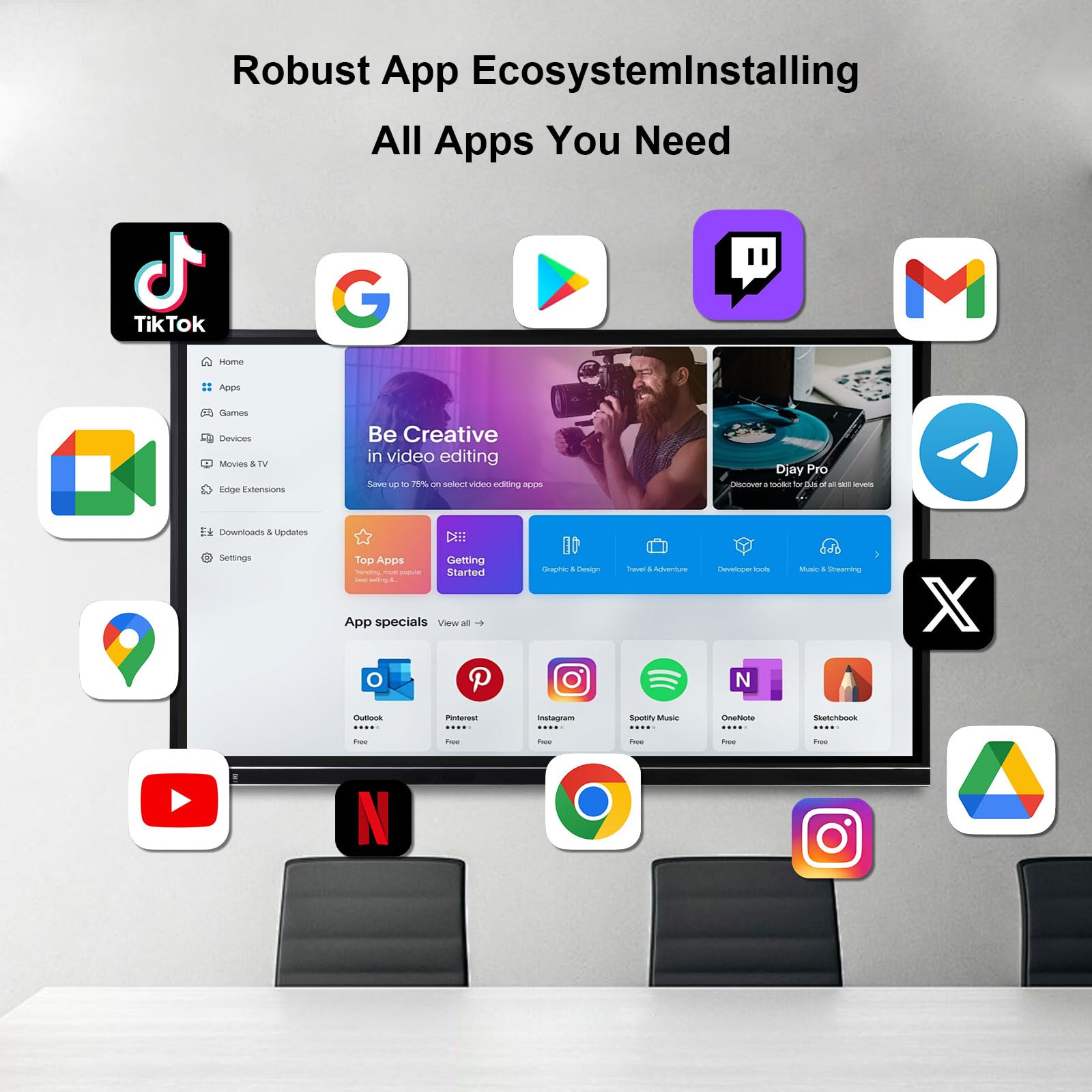 【Android 12 & Google Play Store Access】Run multiple applications smoothly on Android 12, optimized for seamless performance. Directly access a wide range of apps via the Google Play Store, including interactive teaching tools and conference software, ensuring adaptability to various needs.