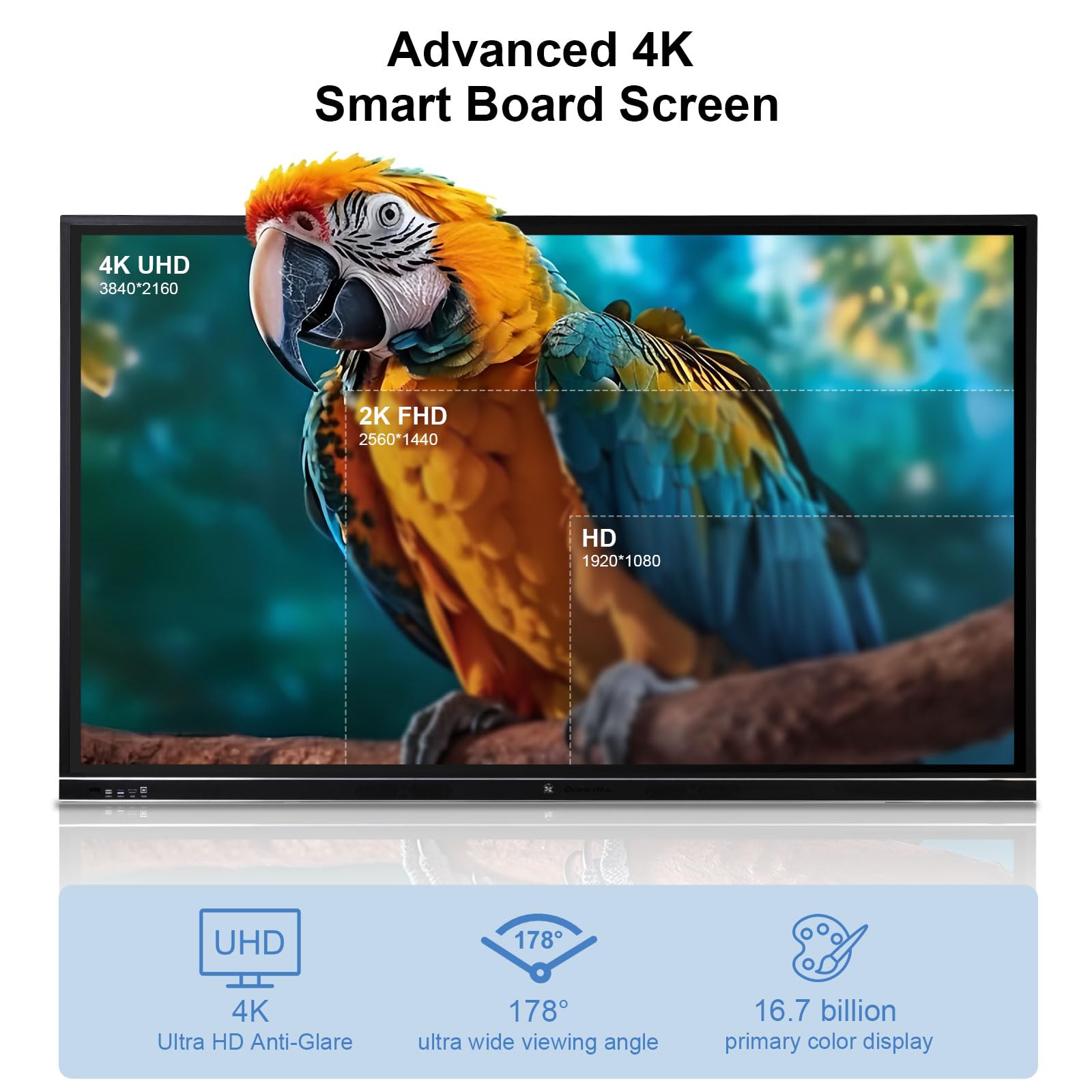 【4K UHD Interactive Touch Screen】Experience instant response and high-precision touch for smooth writing and fluid interaction.OmninexHub 4K UHD smart whiteboard offers crystal-clear visuals, while features like Smart Recognition, Zoom In/Out, and Scan to Take Away enhance usability. With support for over 20 languages, it’s perfect for diverse communication needs.