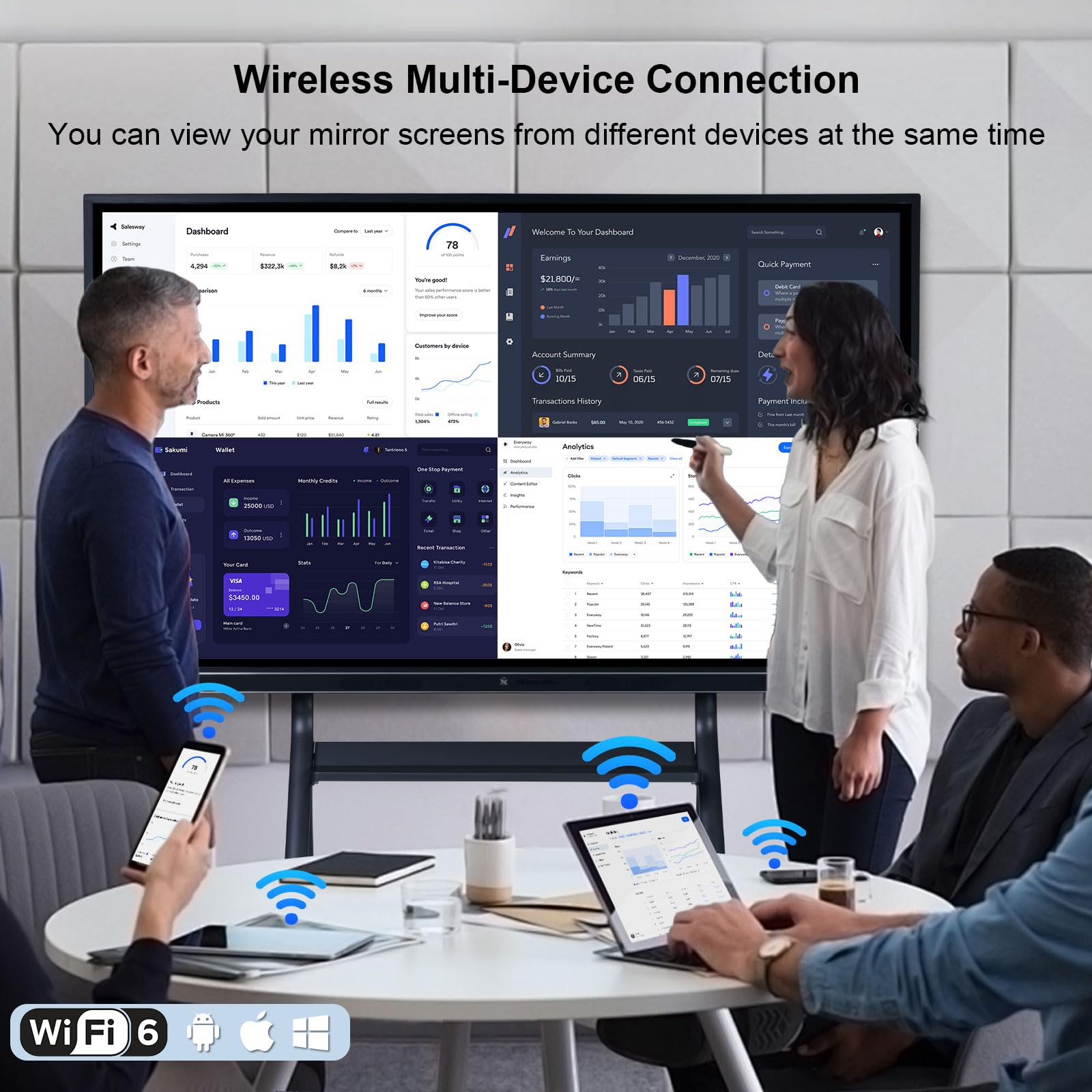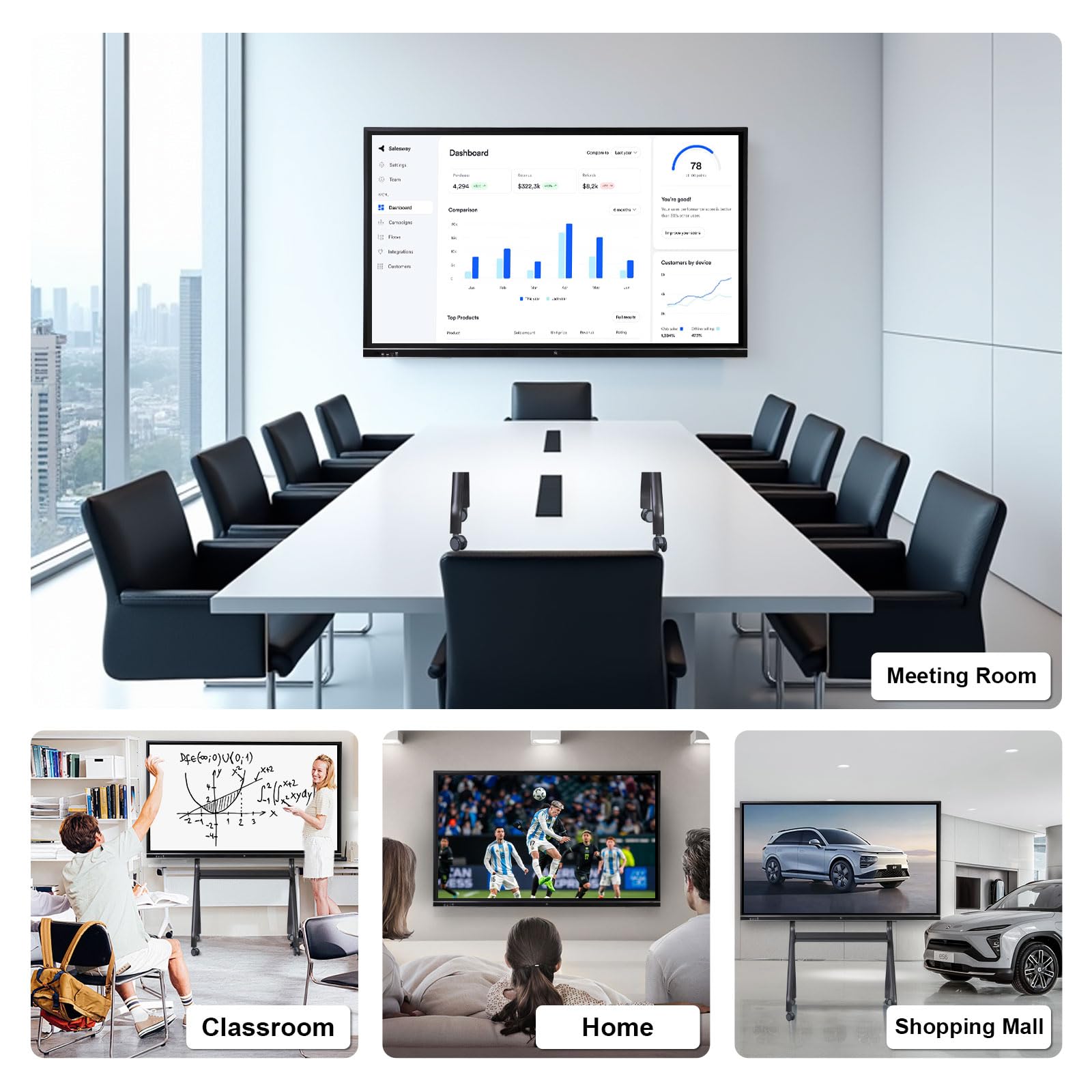 【All-in-One Multimedia Digital Display System】Designed for versatility, OmninexHub 75 inch electronic whiteboard seamlessly integrates text, images, audio, and video, creating impactful presentations for businesses, exhibitions, and education. Its high-definition visuals and multi-device compatibility make it the centerpiece of any interactive environment.