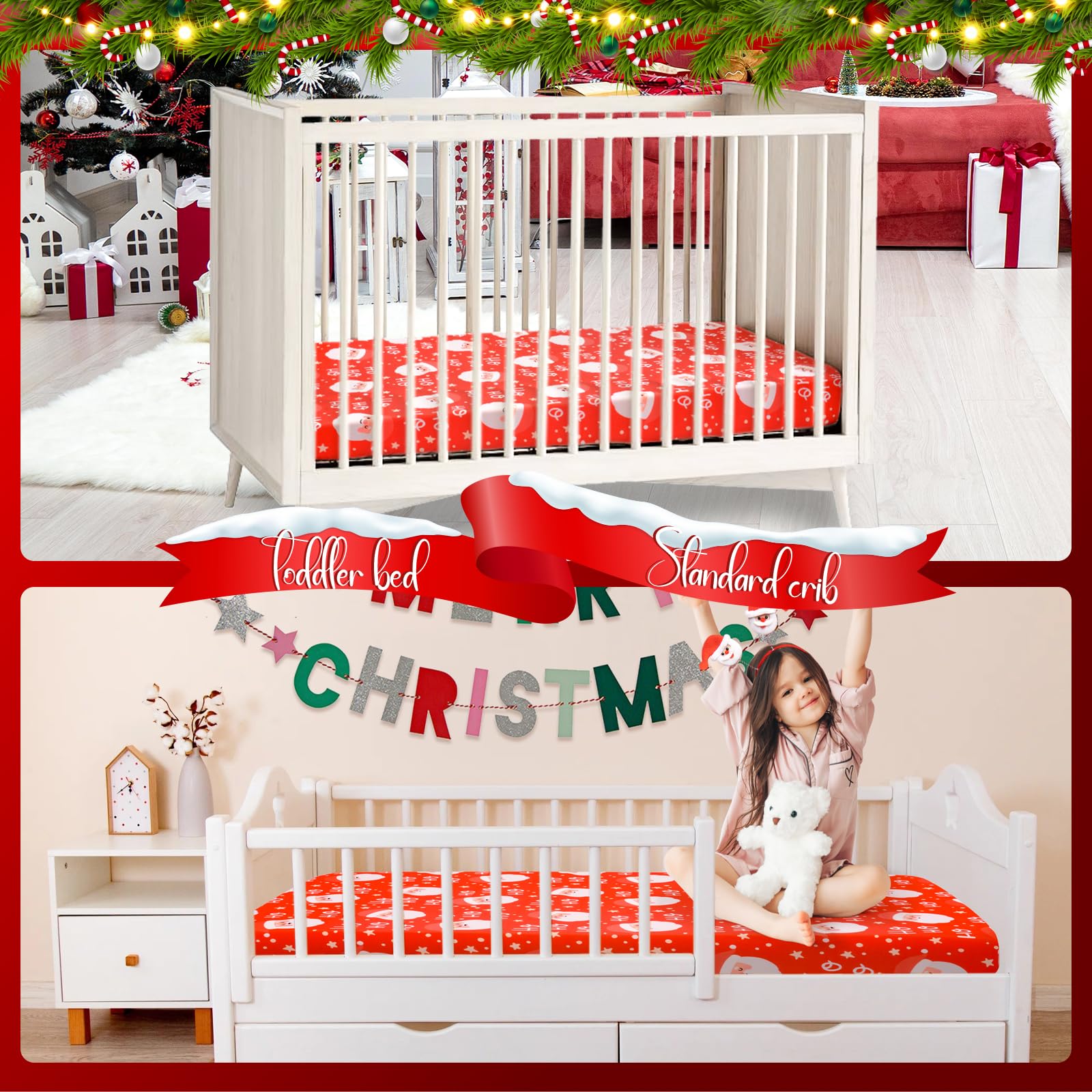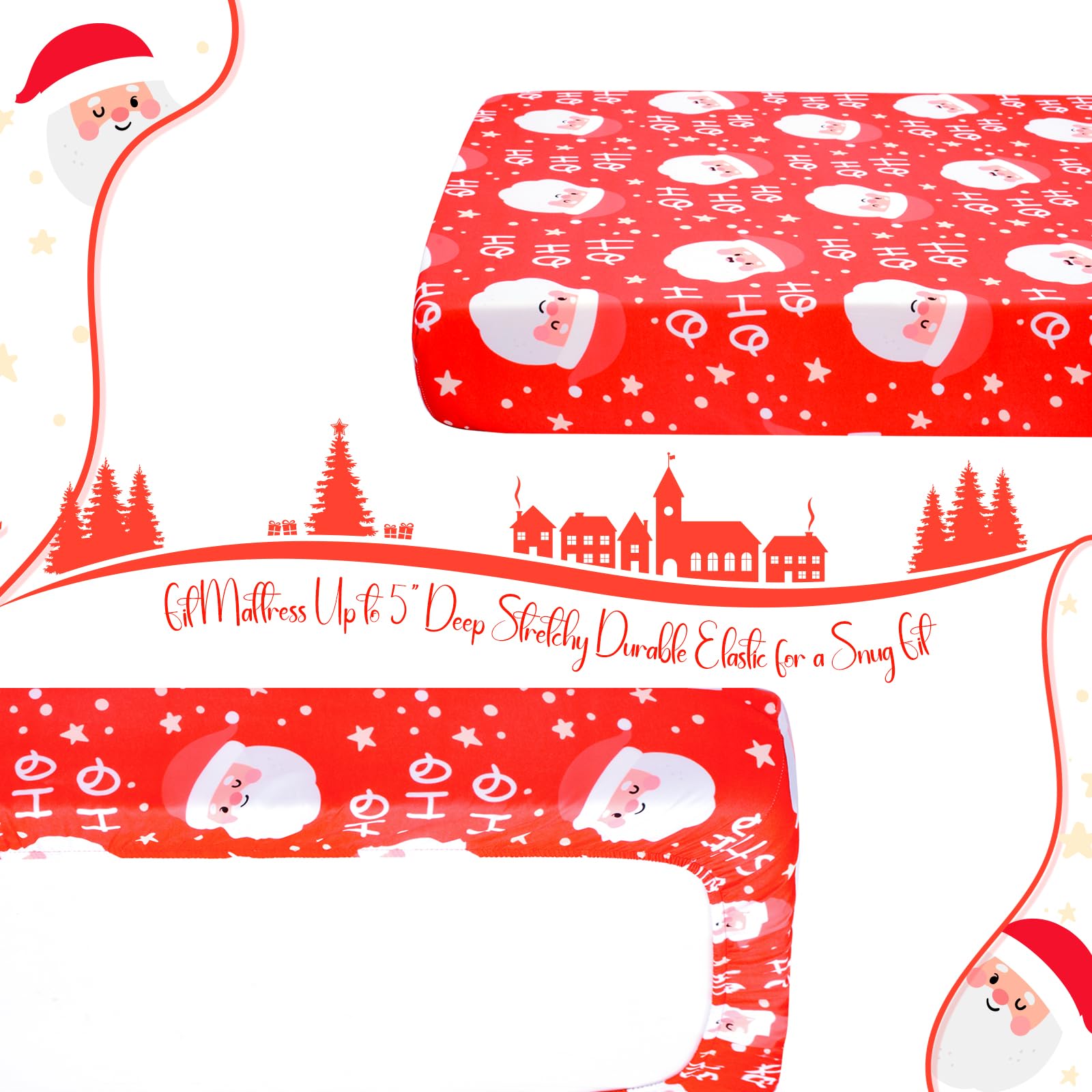 【CRIB SHEET WRAP IN 360 DEGREE】:Dimension 28" x 52" for standard Santa Claus crib and toddler mattresses.The Christmas sheet will wrap your baby mattress in 360 degree,which can make it solid non-slip more break and be suitable for all kinds of baby sleeping positions Fits all standard Crib Mattresses and Toddler Bed Mattresses.