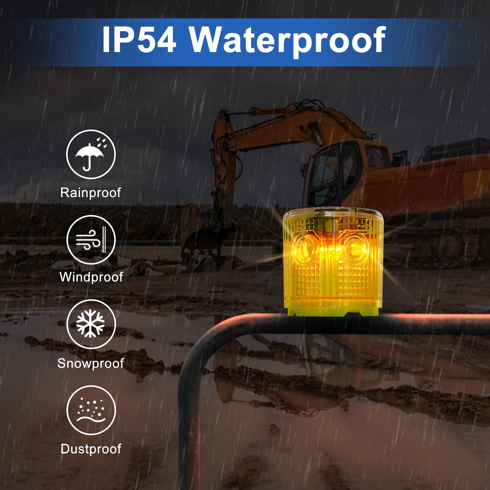 【Super Waterproof and Long Lifespan】IP54 waterproof level and corrosion resistance prolong the lifespan of flashing light, don’t have to replace the light frequently. The light can get wet in the rain but it can't be soak in the water.