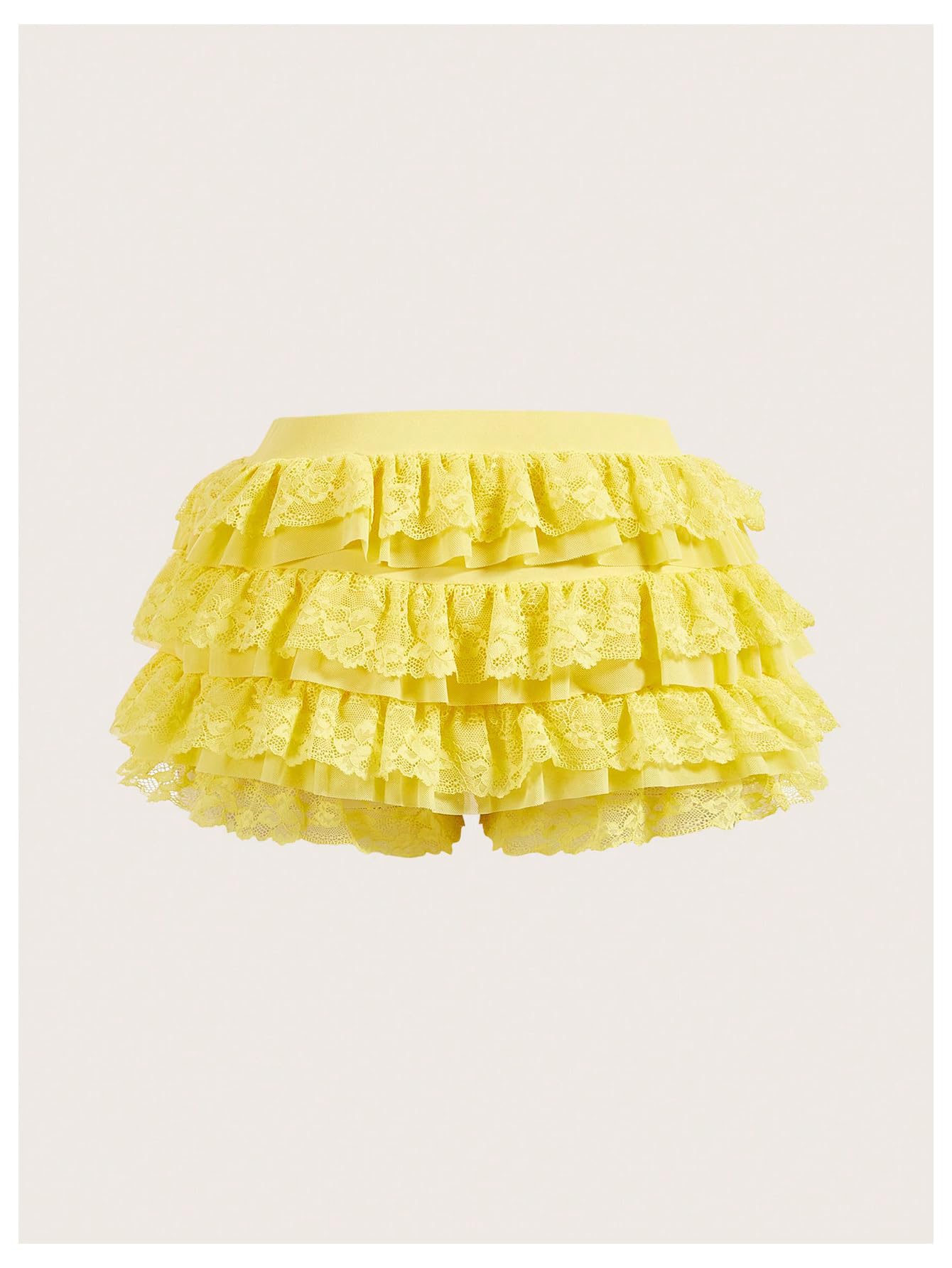 Material: Women's layered ruffle trim lace shorts are made of medium stretch fabric, soft, skin-friendly, breathable, lightweight, comfortable to wear.