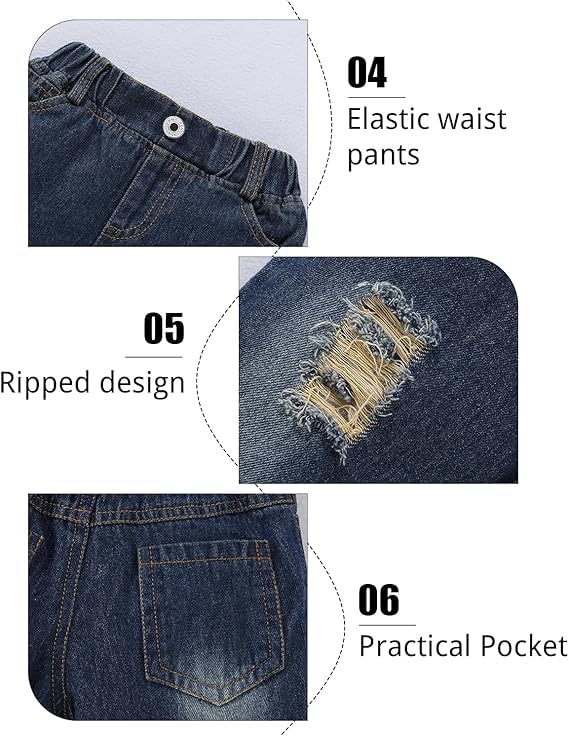Fashion Style: Toddler clothes for boys are designed with letter printing, with comfortable ripped jeans pants, make your little kids look more fashionable and cool, are also a good gift for little boys.