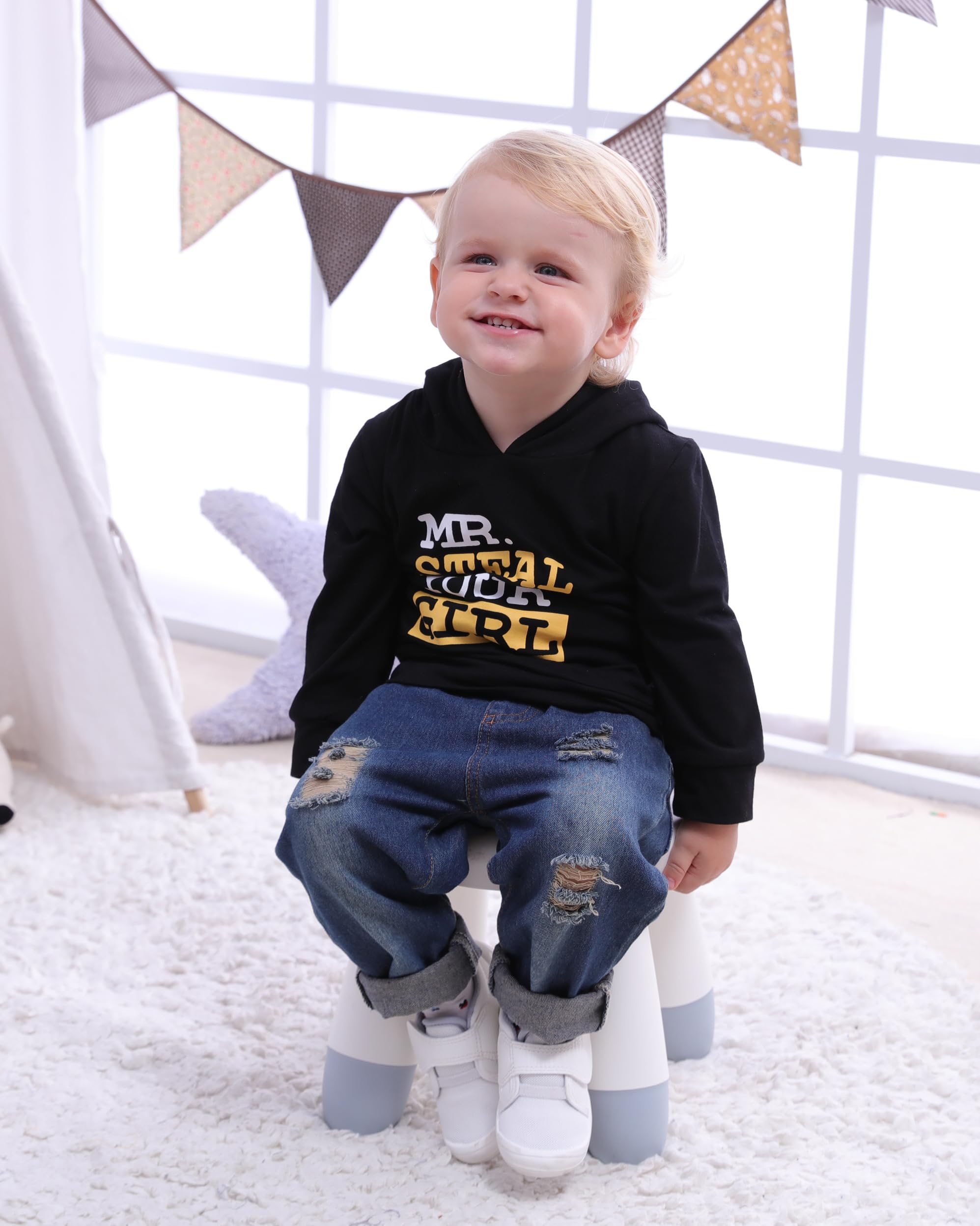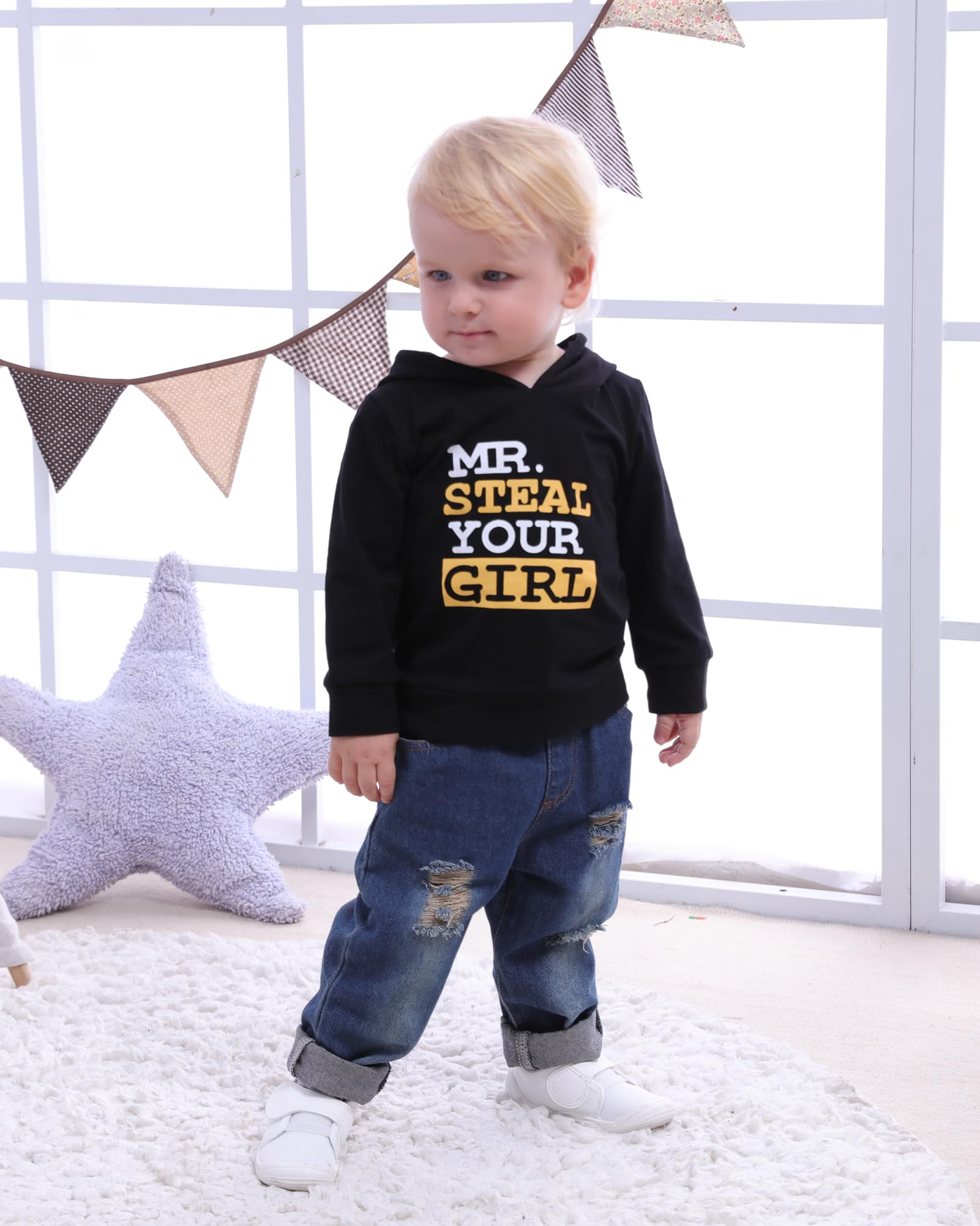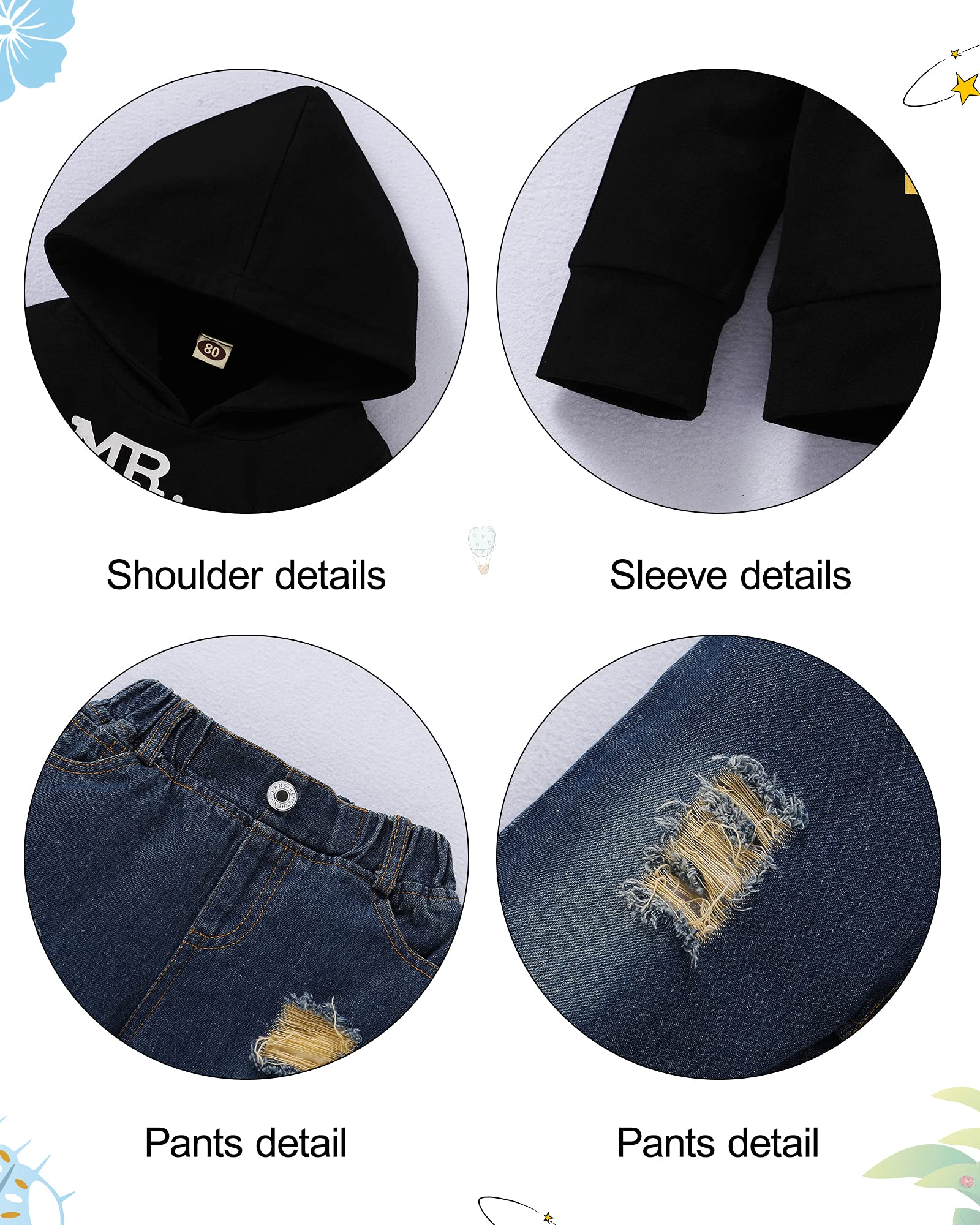 Package: 1* Letter printed hooded top + 1* Baby boy jeans. Baby boy outfits will provide the best comfort experience for babies playing or daily wear.