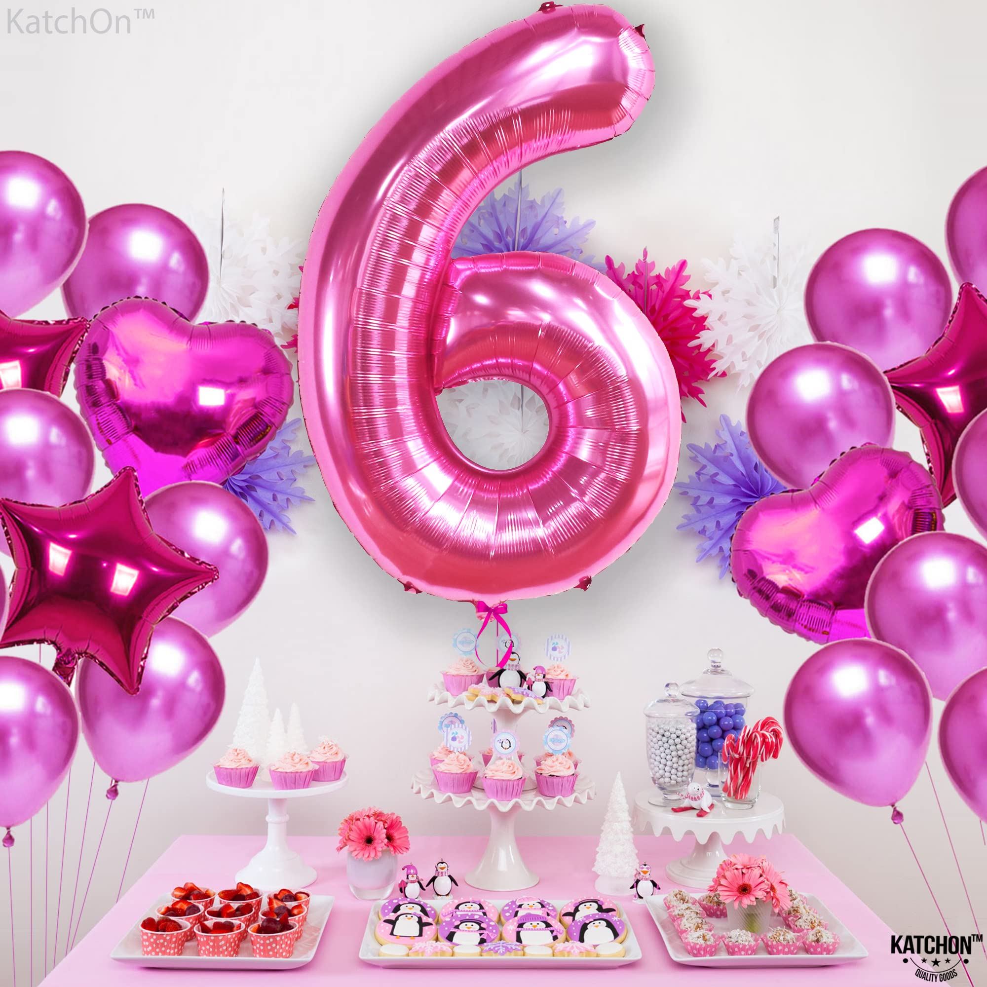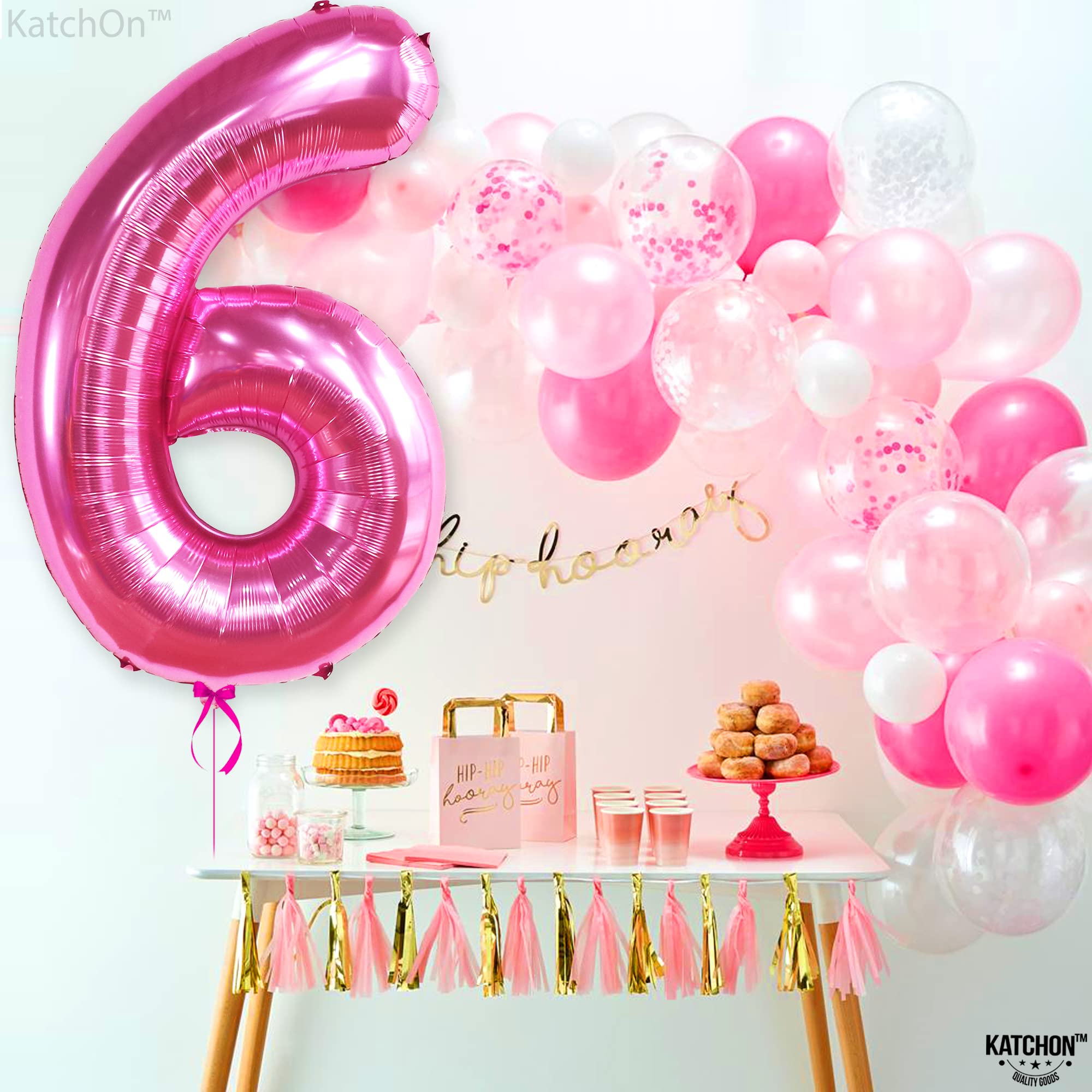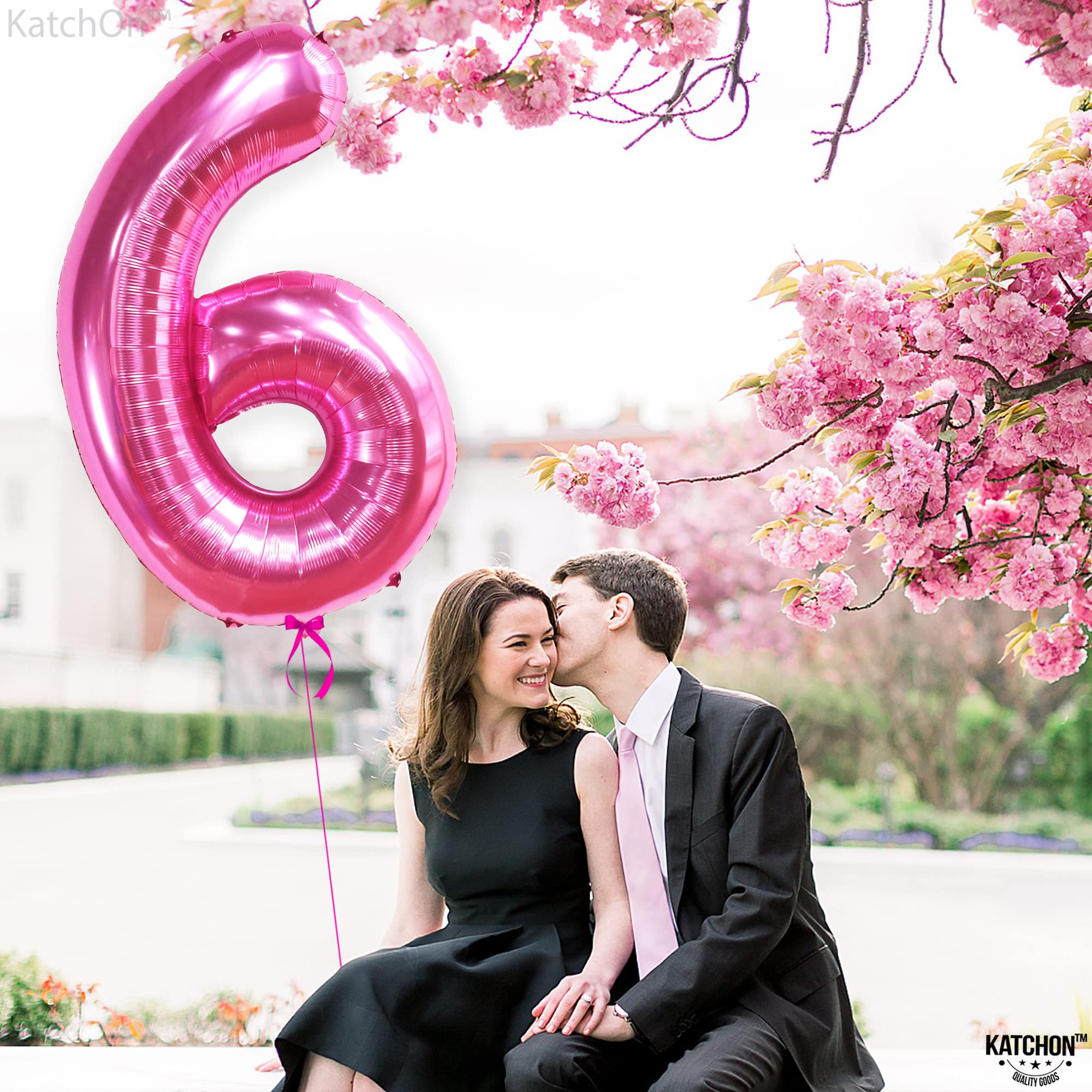 GIANT SIZE - 40 INCH | BEAUTIFUL METALLIC HOT PINK BIRTHDAY BALLOONS - This Hot Pink number 6 balloon 40 inch is the party complement you shouldn’t miss. Add a great decoration with this 40-inch Number 6 balloons for birthdays, 1 Pink Ribbon and 1 Straw. This large 6 balloon Pair pink 6 birthday balloon with other hot pink balloons numbers for girls or number 6 pink balloon 6th birthday party decorations for 6 year old girl. Make day special with Six balloon Number or 6 mylar balloon or mylar 6 balloon for 6 year old birthday decorations for girl, balloon 6 year old.