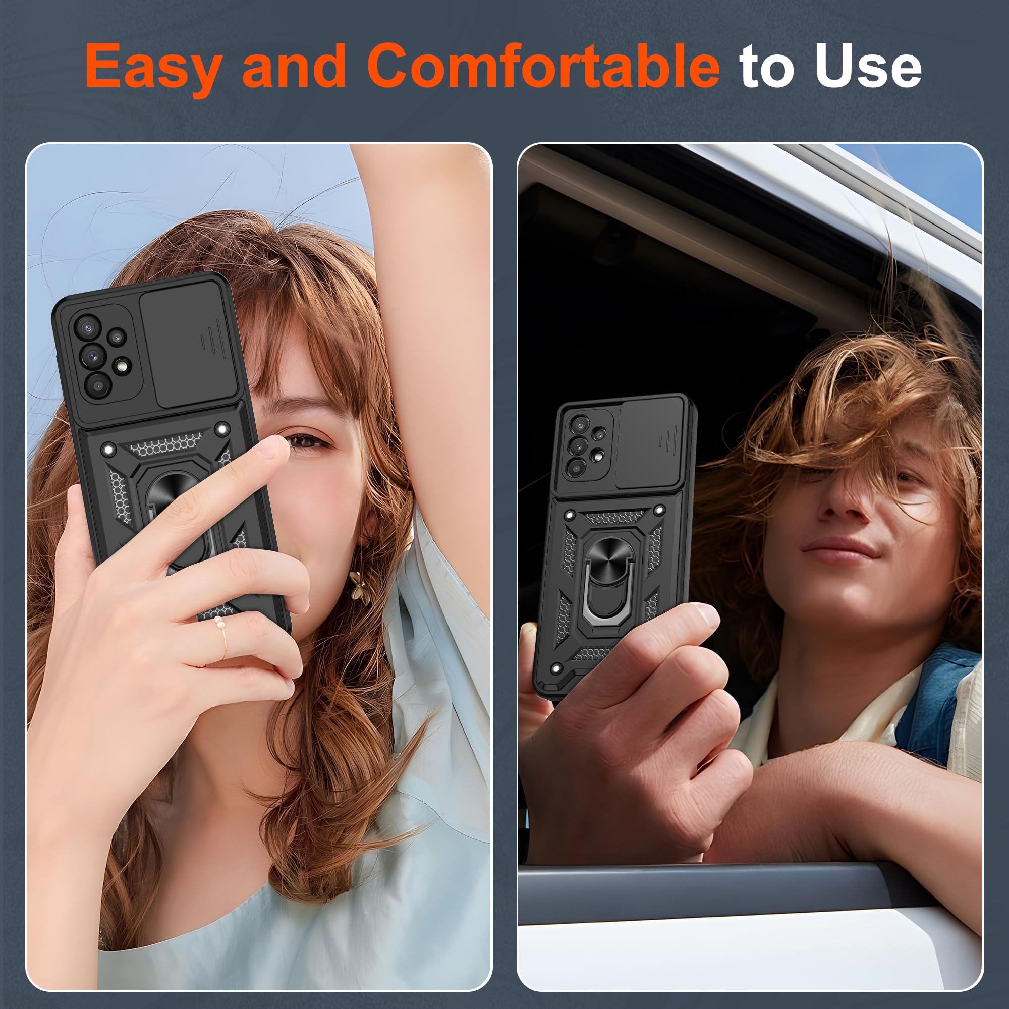 [Sliding Camera Cover] Unique camera slide cover design for Galaxy A32 5G Phone Case, smooth slide. Just slide left and right to protect/use the camera lens. now you can capture stunning photos and videos without worrying about damage to your precious lens