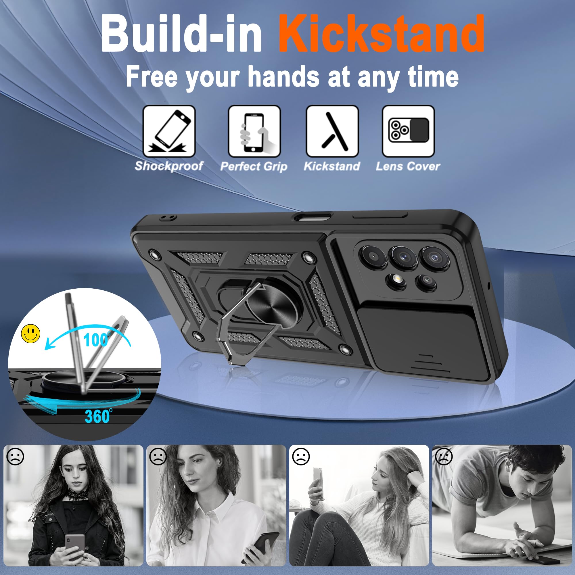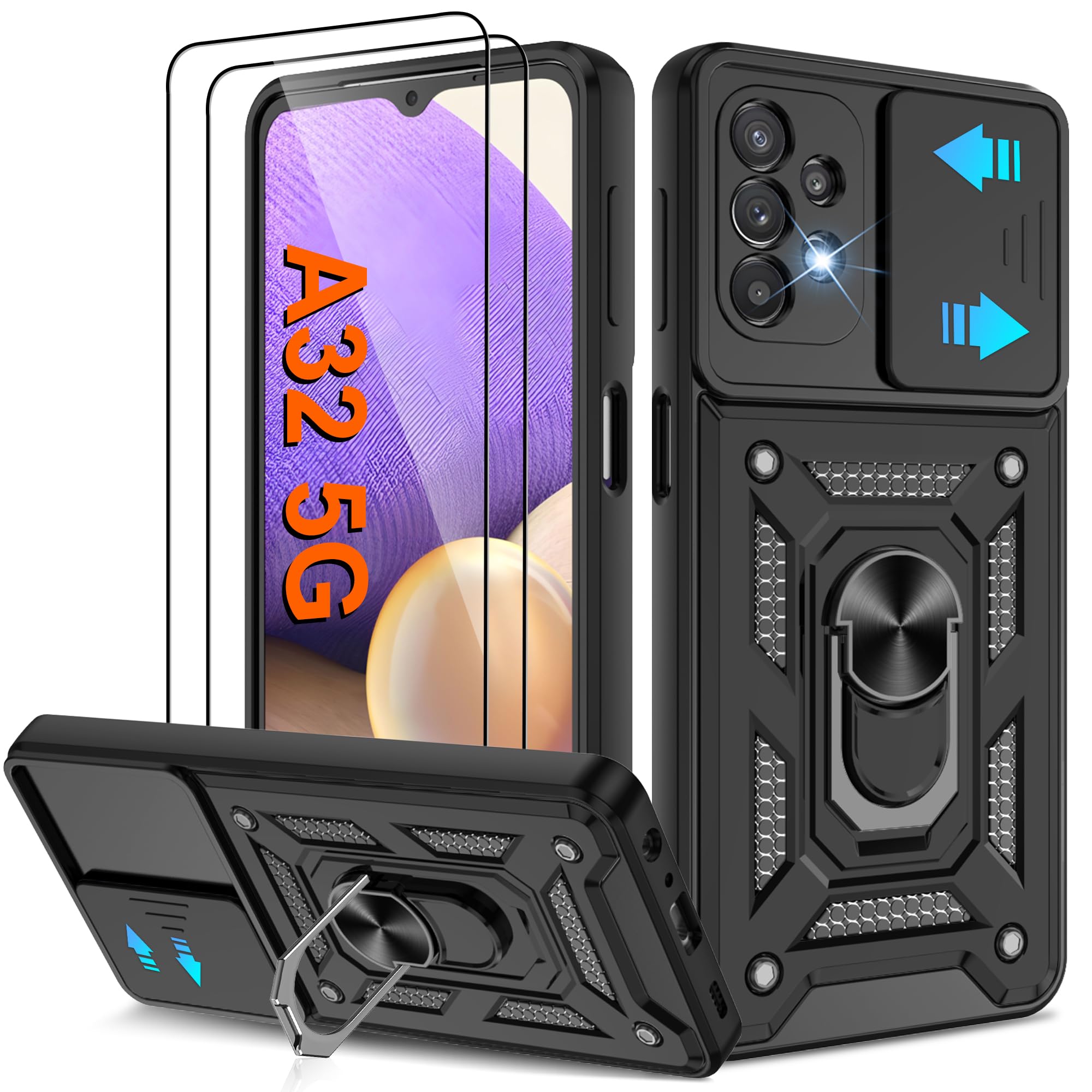 [360° Rotating Kickstand Ring] Equipped with premium metal ring kickstand, designed for Galaxy A32 5G Phone Case offers multiple adjustable angles. Built in kickstand holds your phone at optimal viewing angles for movies & videos and free your hands