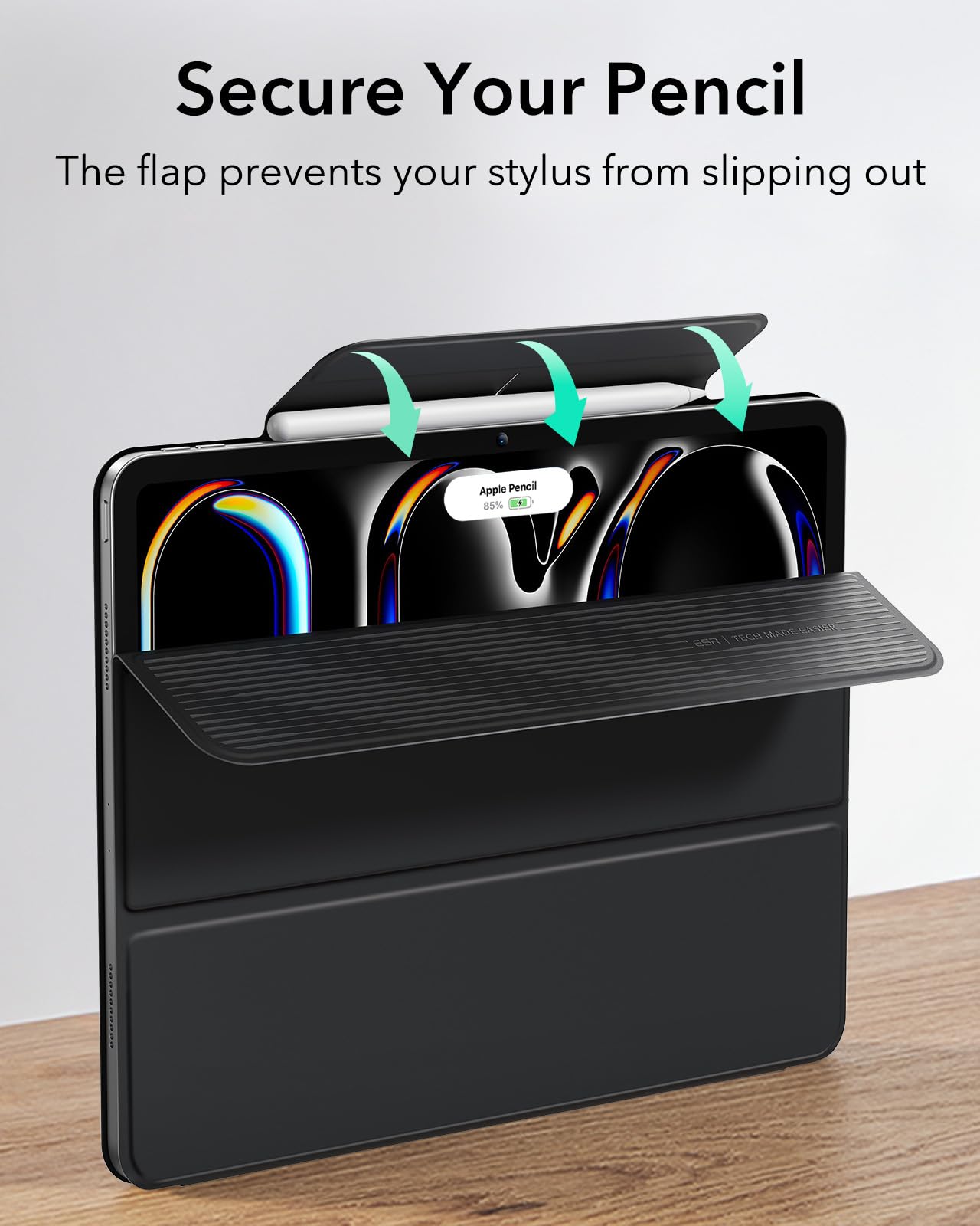 Supports Pencil Pro and Pencil(USB-C): this iPad Pro case fully supports Pencil Pro and Pencil(USB-C) with a recessed side groove for magnetic charging and a magnetic clasp to keep your Pencil secure