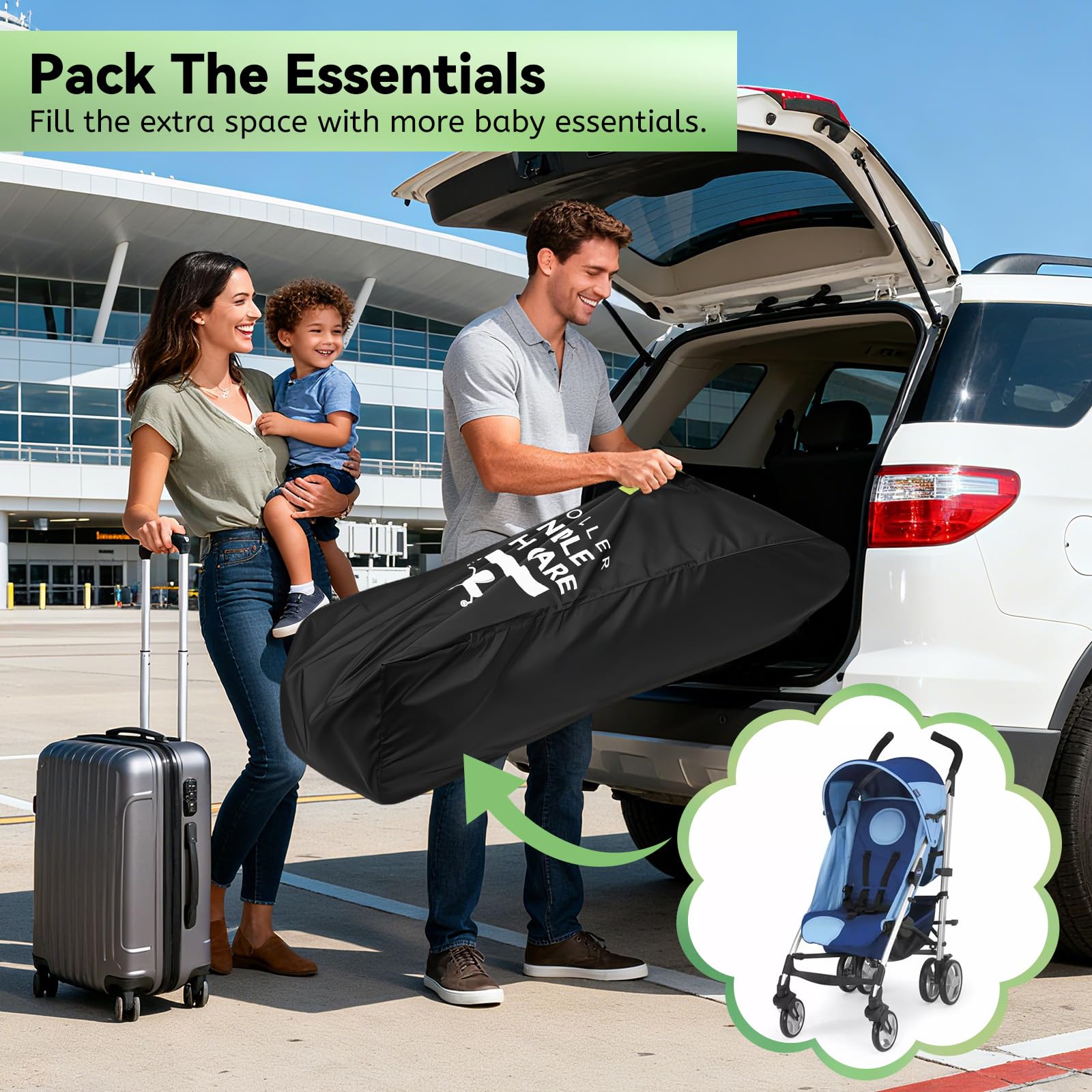 Built to Last: Engineered to protect through years of travel.Our umbrella stroller bag crafted from tear-resistant polyester fabric, shields your stroller from rough handling on planes, trains, and road trips.