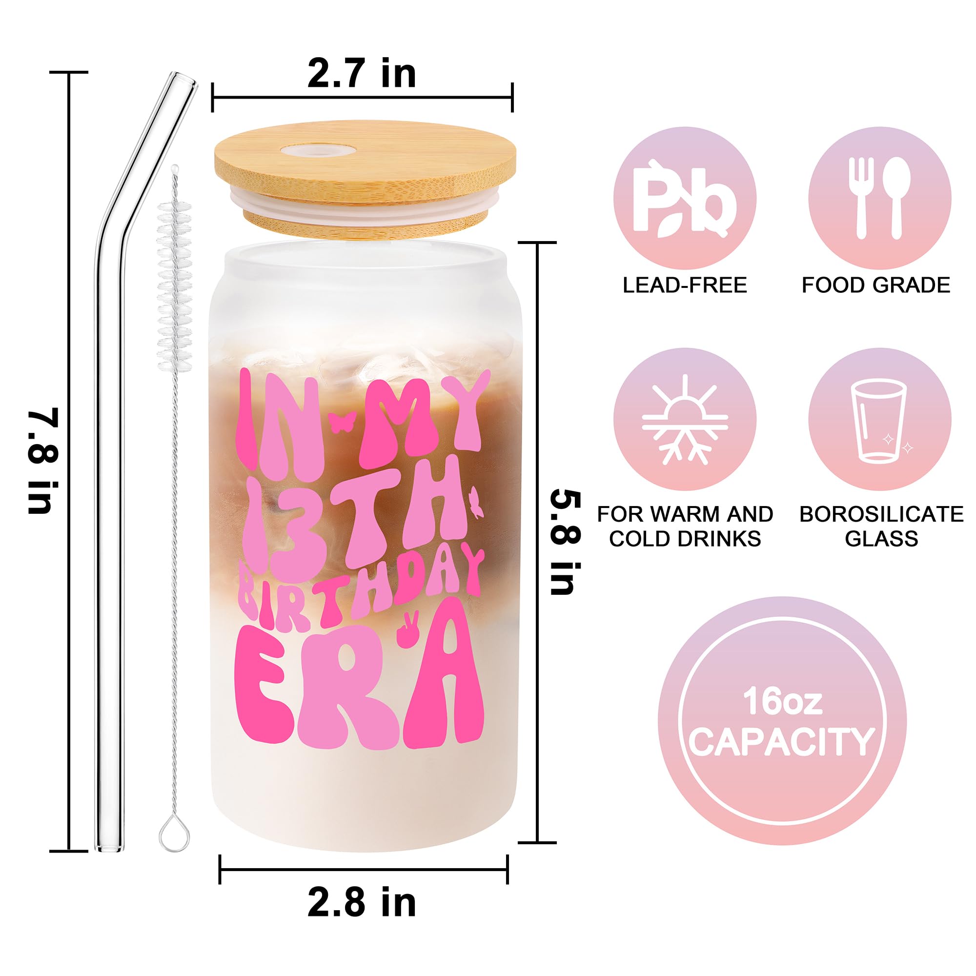💝【13 Year Old Beautiful Girl Birthday Gift Ideas】Birthday 4 piece set includes 1 x 16 Oz can glass with lid and straw, 1 x Socks made of pure cotton, unique design and cute style, 1 x heartfelt congratulations card on kraft paper and 1 x stylish pearl necklace with a souvenir card.