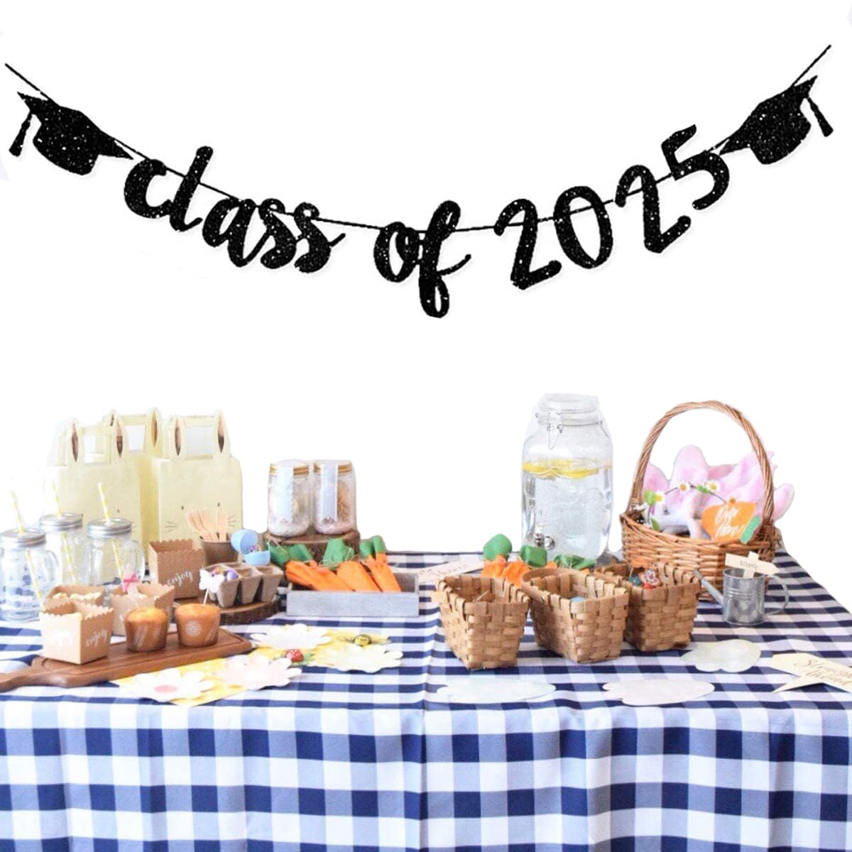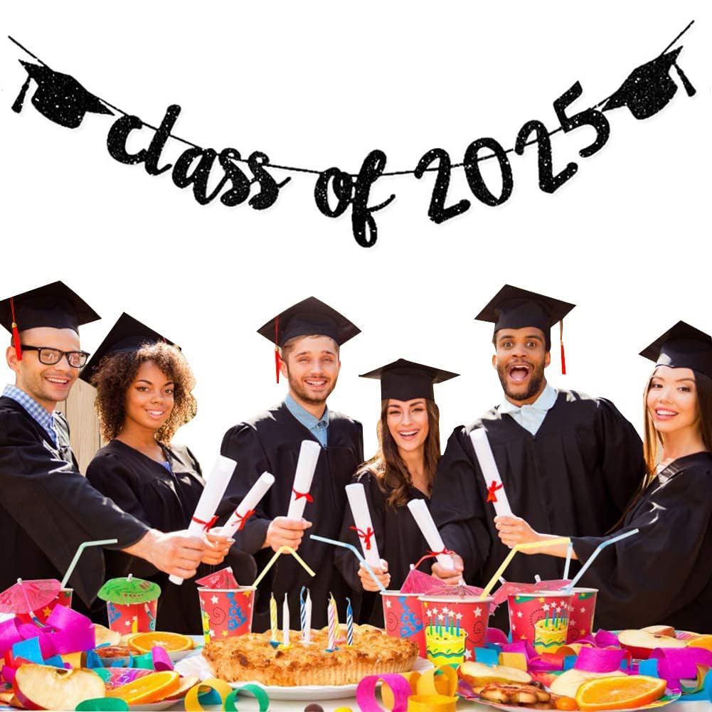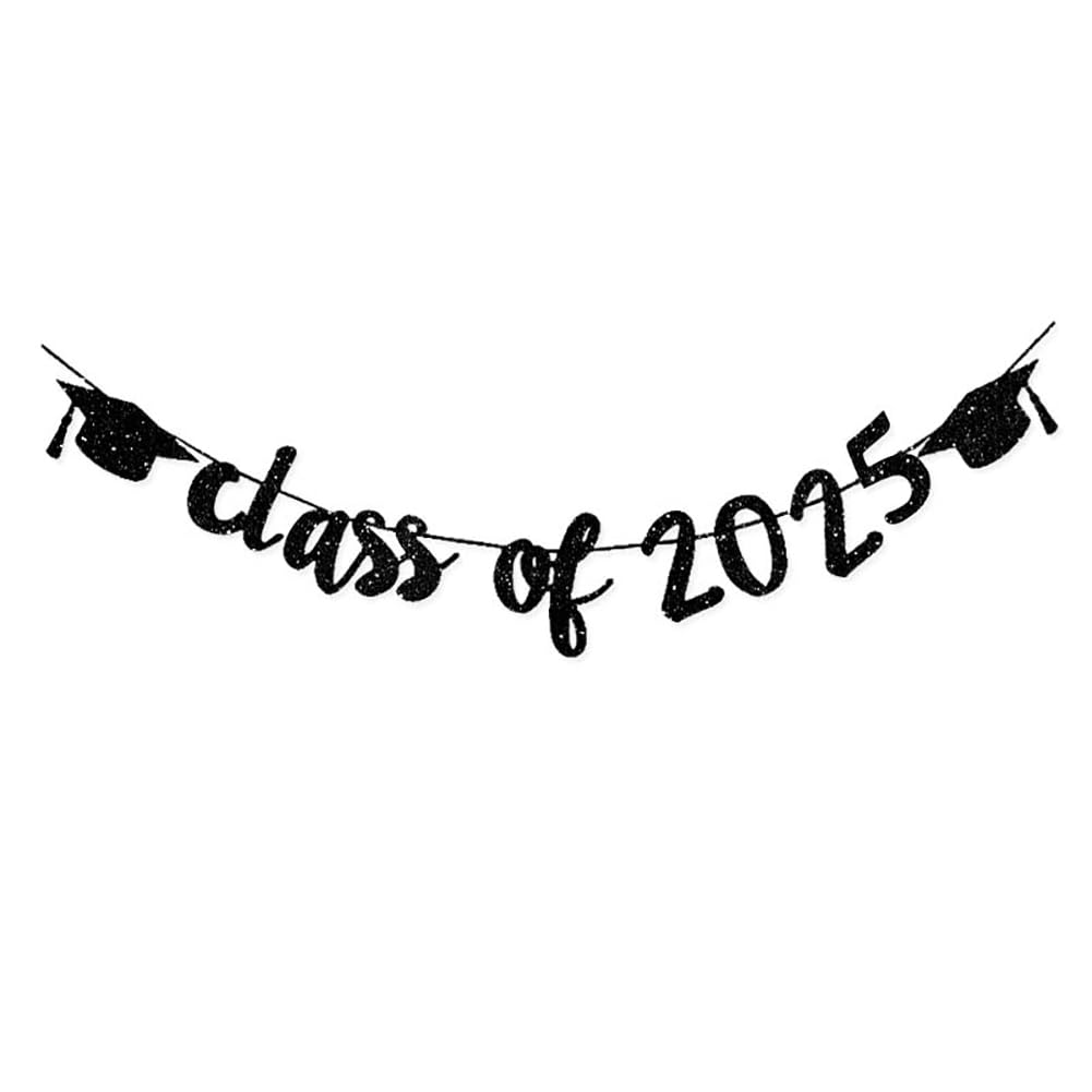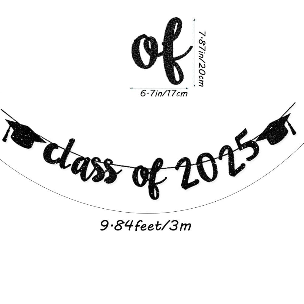 Package Included: 1 Pcs black Glittery Class of 2025 Graduation Banner, great for 2025 graduation party supplies decoration, each on part with approx 9.84 feet / 3meters rope.
