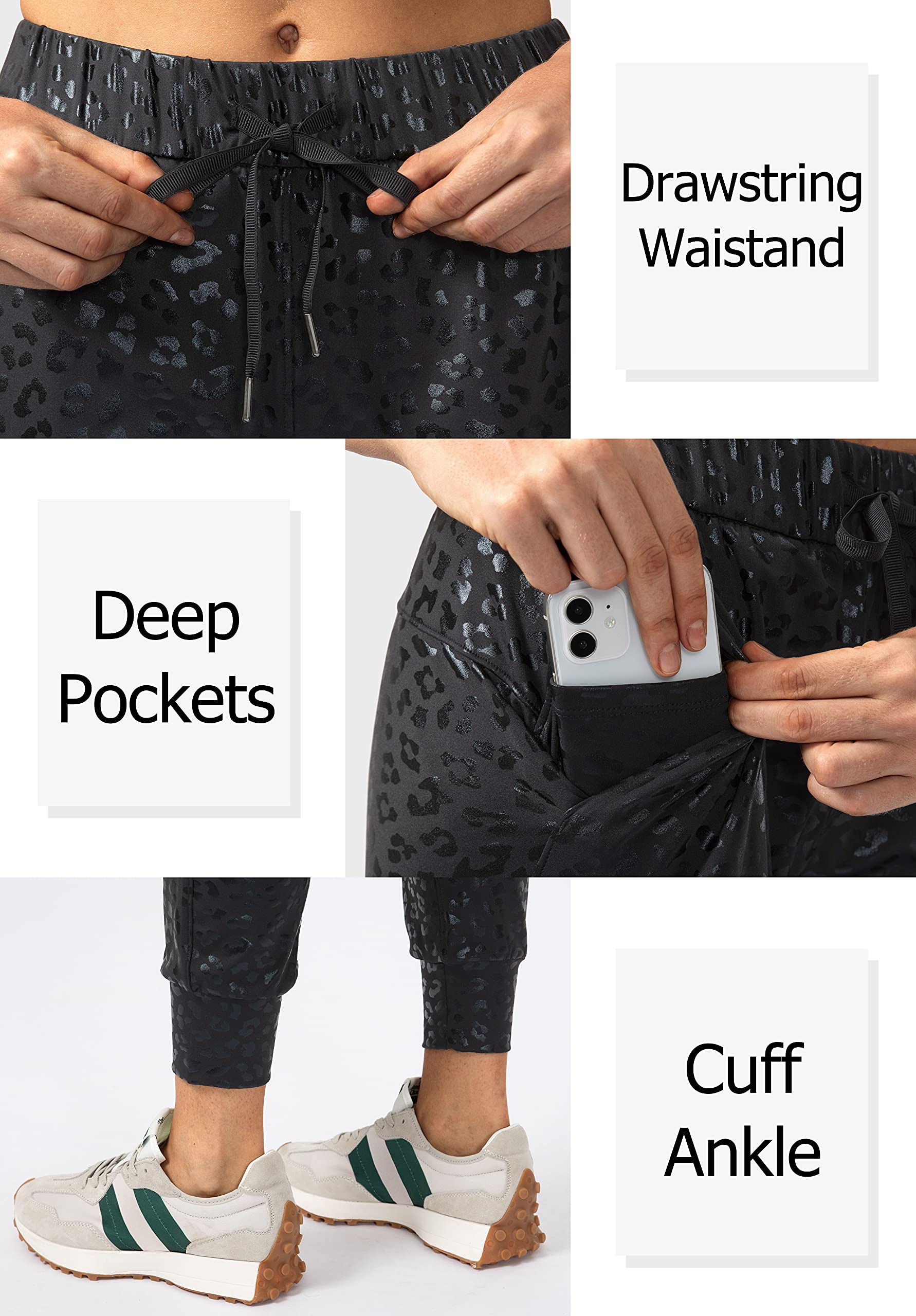 Fabric: 75% Polyamide/25% Elastane. Santiny womens joggers pants made of Soft,comfortable and four-way stretch fabric provide you with maximum comfort,support and coverage in your workout.