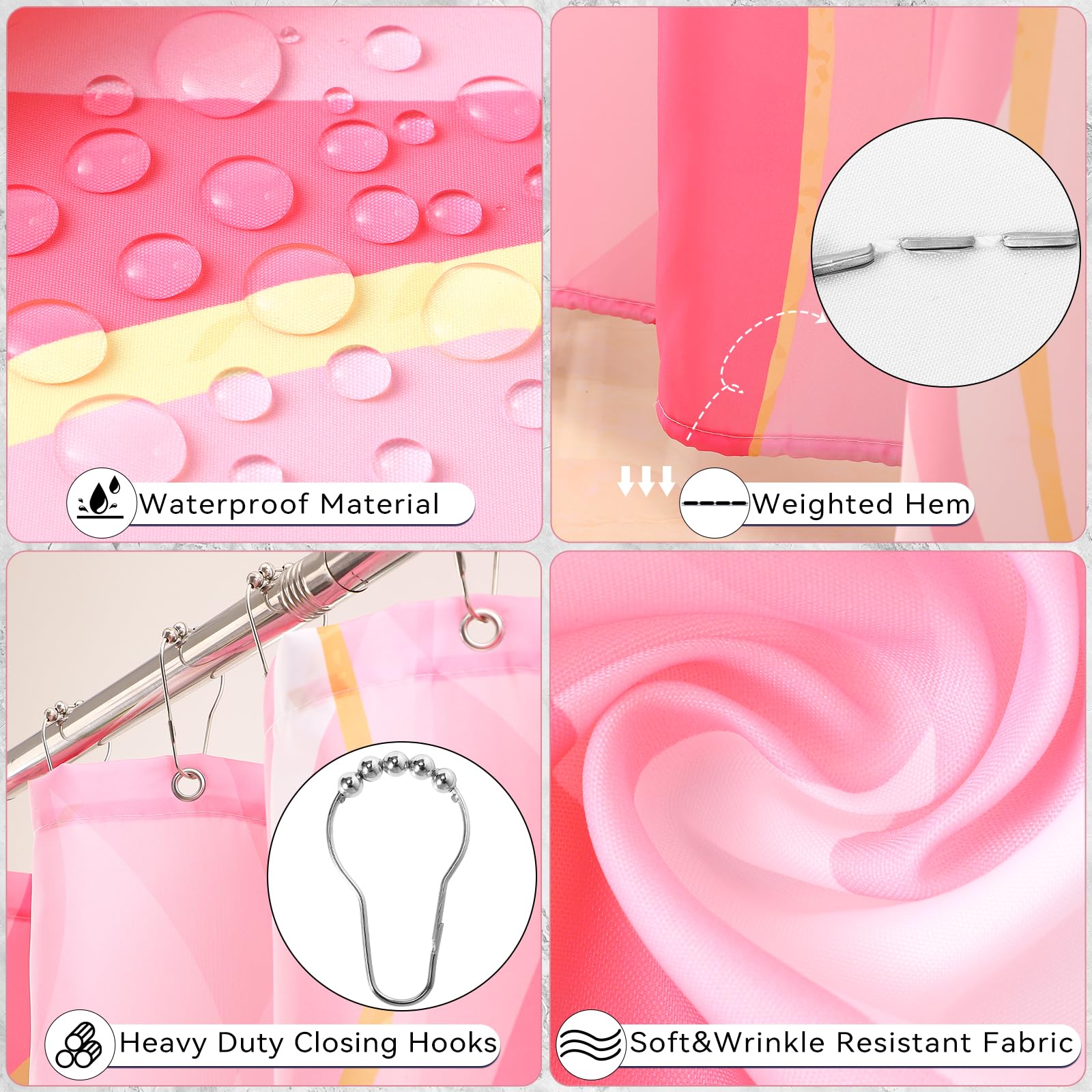 ใ๐๐ ๐๐ญ๐ซ๐ข๐ฉ๐ ๐๐ข๐ง๐ญ๐ข๐ง๐ ๐๐ก๐จ๐ฐ๐๐ซ ๐๐ฎ๐ซ๐ญ๐๐ข๐งใMade of soft and high quality polyester cloth, which is waterproof, durable and long-lasting use. The pink printed shower curtain is waterproof and dries quickly, making it suitable for use in damp bathrooms. Unique design just like a realistic landscape. helping you to enjoy pleasant bath time.