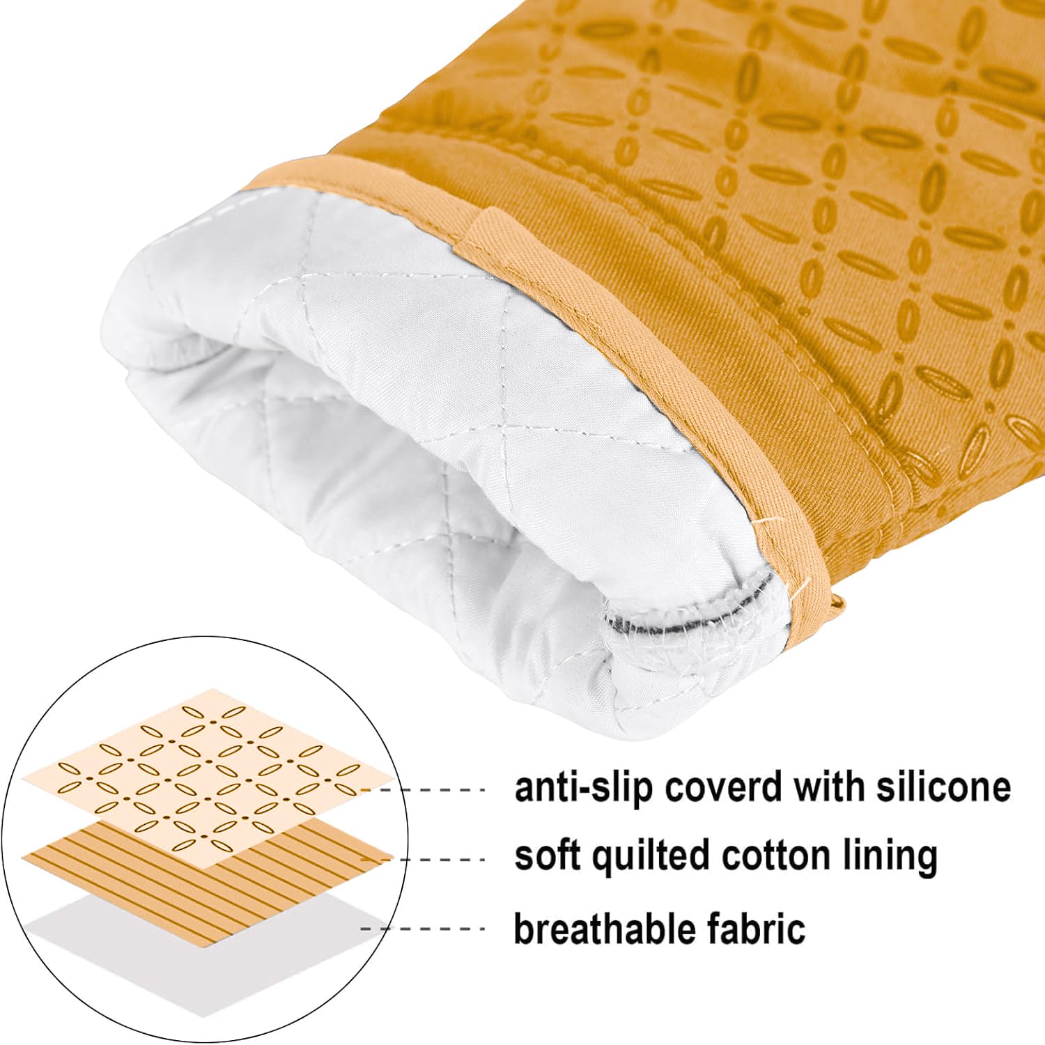 500°F HEAT RESISTANT &NON-SLIP: This oven mitts heat resistant 500 degrees because of the durable construction so it can effectively keep you protected from burning while you enjoy cooking and grilling. Enhanced with anti-slip silicone design to provide a more robust, non-slip grip that can be held securely when handling the kitchen utensils