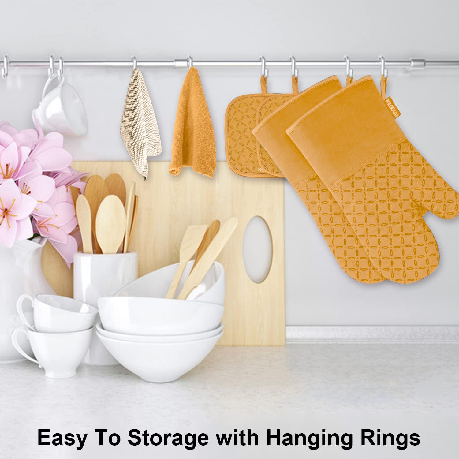 EASY TO STORE: The kitchen oven mitts and pot holder come with rope design, so it is easy to store and hang them via the suspension rings when you are not using, save your room and make your kitchen look more cleaner