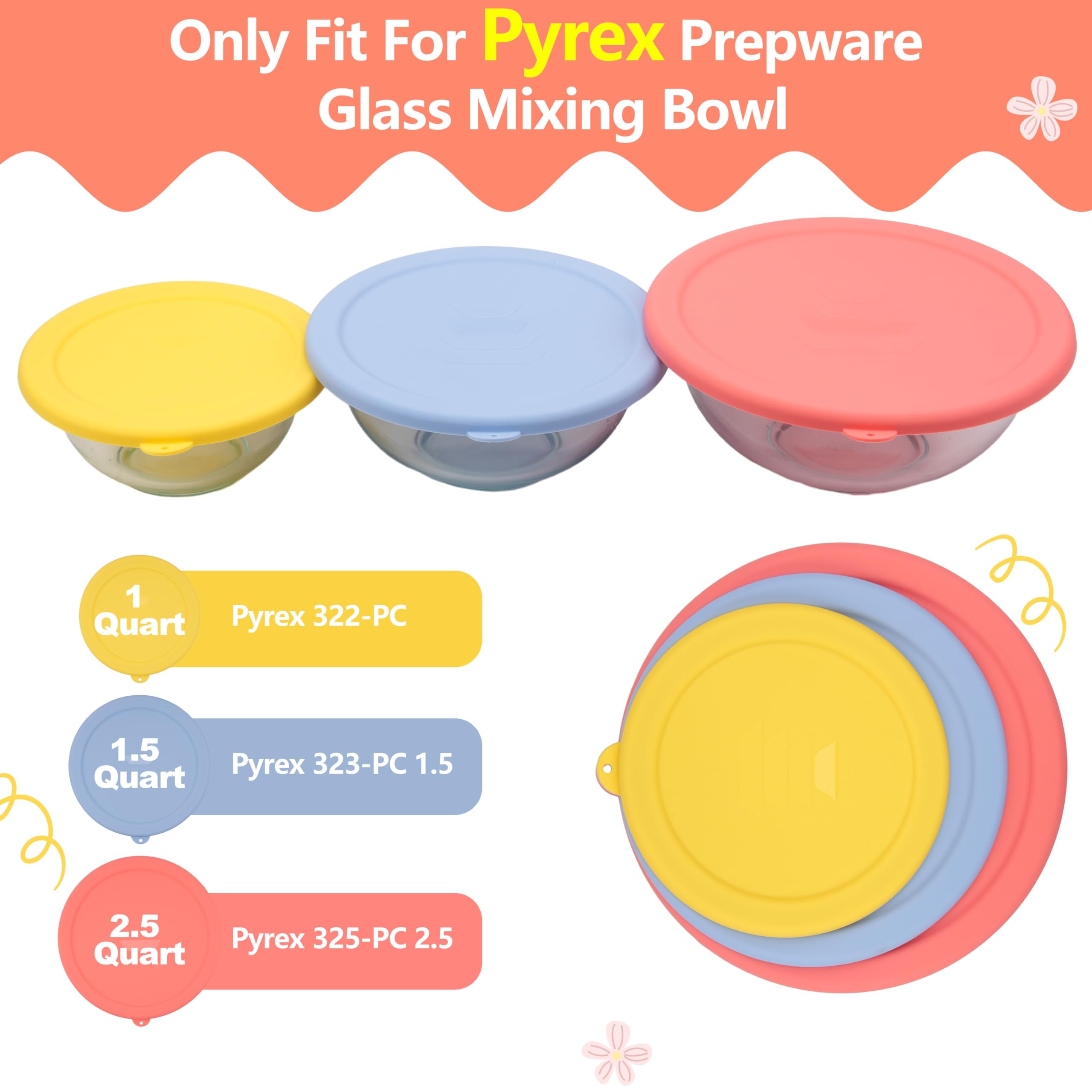 [Package Included] PUREKRA 3 packs of silicone replacement lids for Pyrex Prepware Rimmed Glass Mixing Bowls, including three different sizes. Fits Pyrex 322 - 1 Quart, 323 - 1.5 Quart, and 325 - 2.5 Quart mixing bowls.