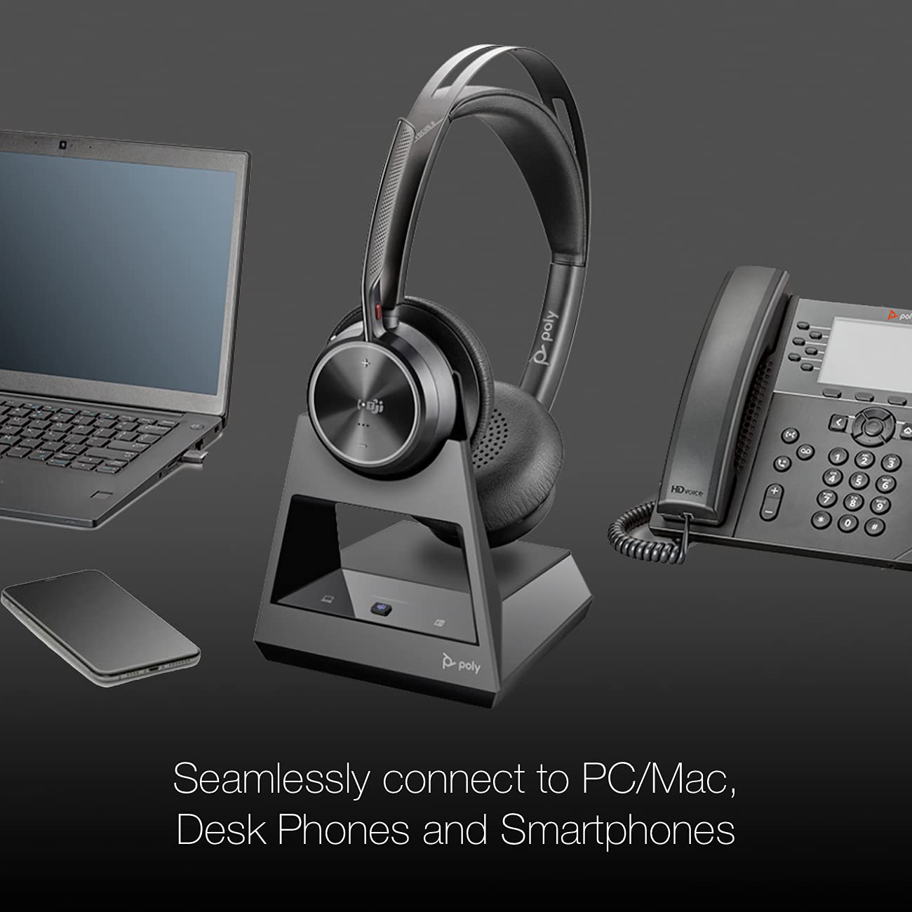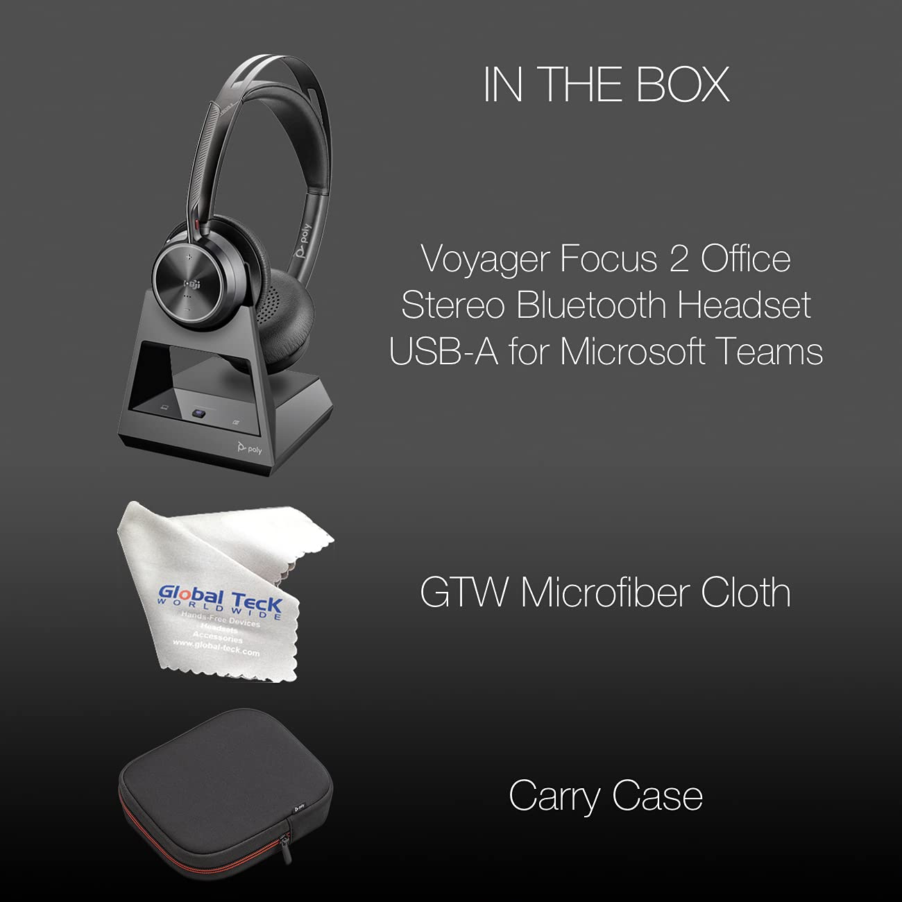 ✅ POLY BUNDLE OF 2 ITEMS: Poly Voyager Focus 2- (Teams) Office Stereo Bluetooth Headset with Base and Microfiber Cloth