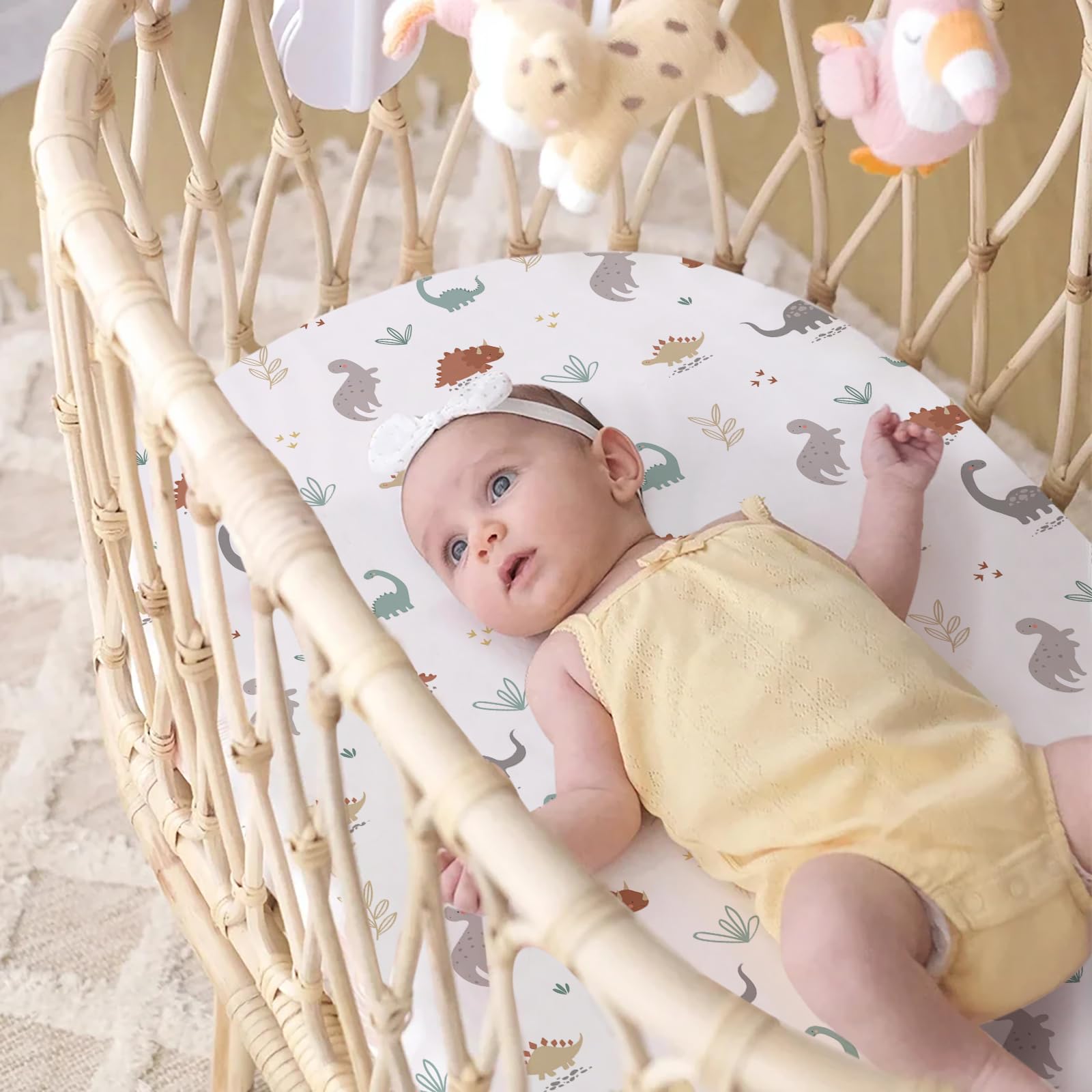 UNIVERSAL FIT BASSINET SHEETS FOR ALL CRADLE MATTRESSES:Our bassinet sheets are designed to fit all bassinet mattress pads, including oval, round, rectangle, and hourglass shapes. Whether you’re using a bedside sleeper, Moses basket, or standard bassinet, these bassinet sheets feature stretchy elastic edges for a snug, secure fit that won’t slip or bunch.