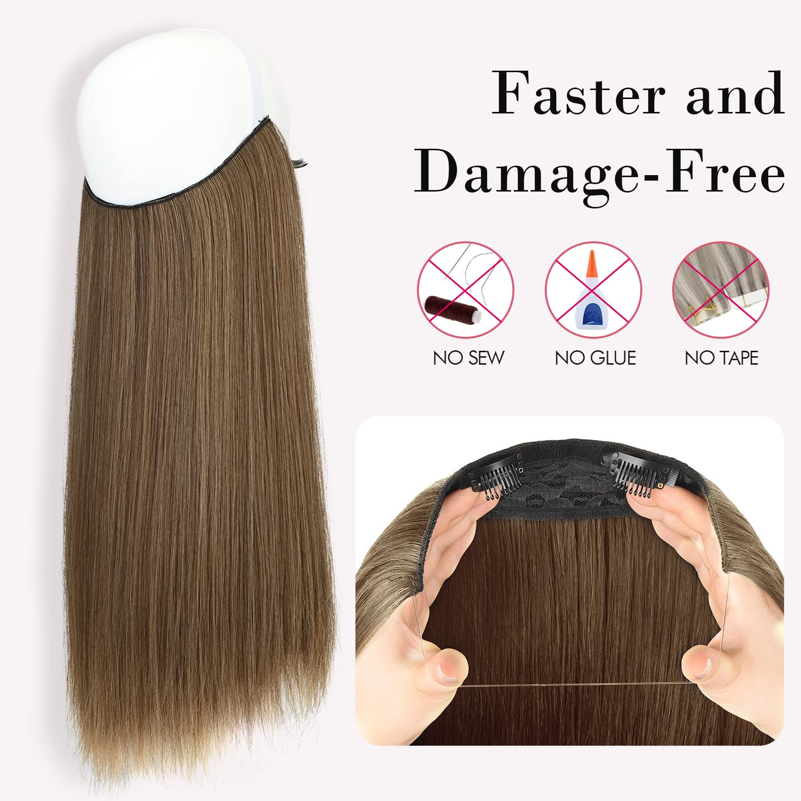 Easy to Apply: No tape, no glue, no sew, only need to position the easy wire hair extensions over your hair like a headband, taking less time for instantly thicker and longer hair without extra help in few minutes