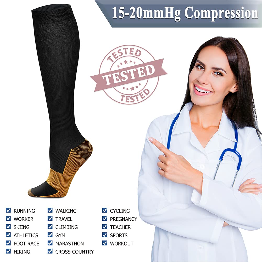 COPPER COMPRESSION SOCKS - Copper is a great conductor of electricity, we extended its natural property to rejuvenate blood circulation of your legs through copper fibers capable of reviving blood circulation along with providing a 15-20 mmHg compression. It offers the most perfect settlement scheme for those who sit for a long period during travel or at work.