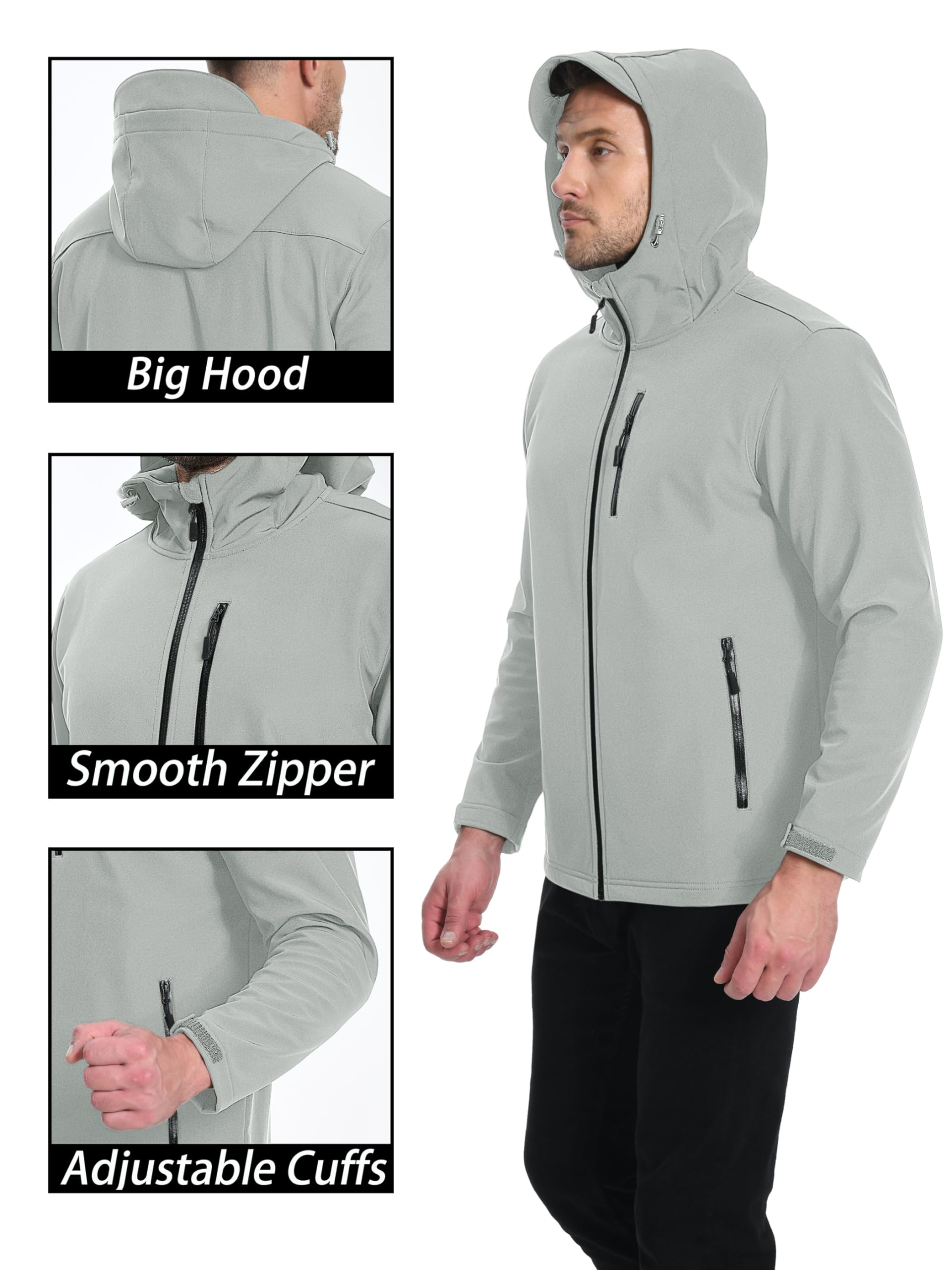 WINDBREAKER & WARM - The lightweight raincoat for men is made of windproof, high-quality soft shell fabric and thermal fleece lining, which makes the wind never get through and keep you warm all day