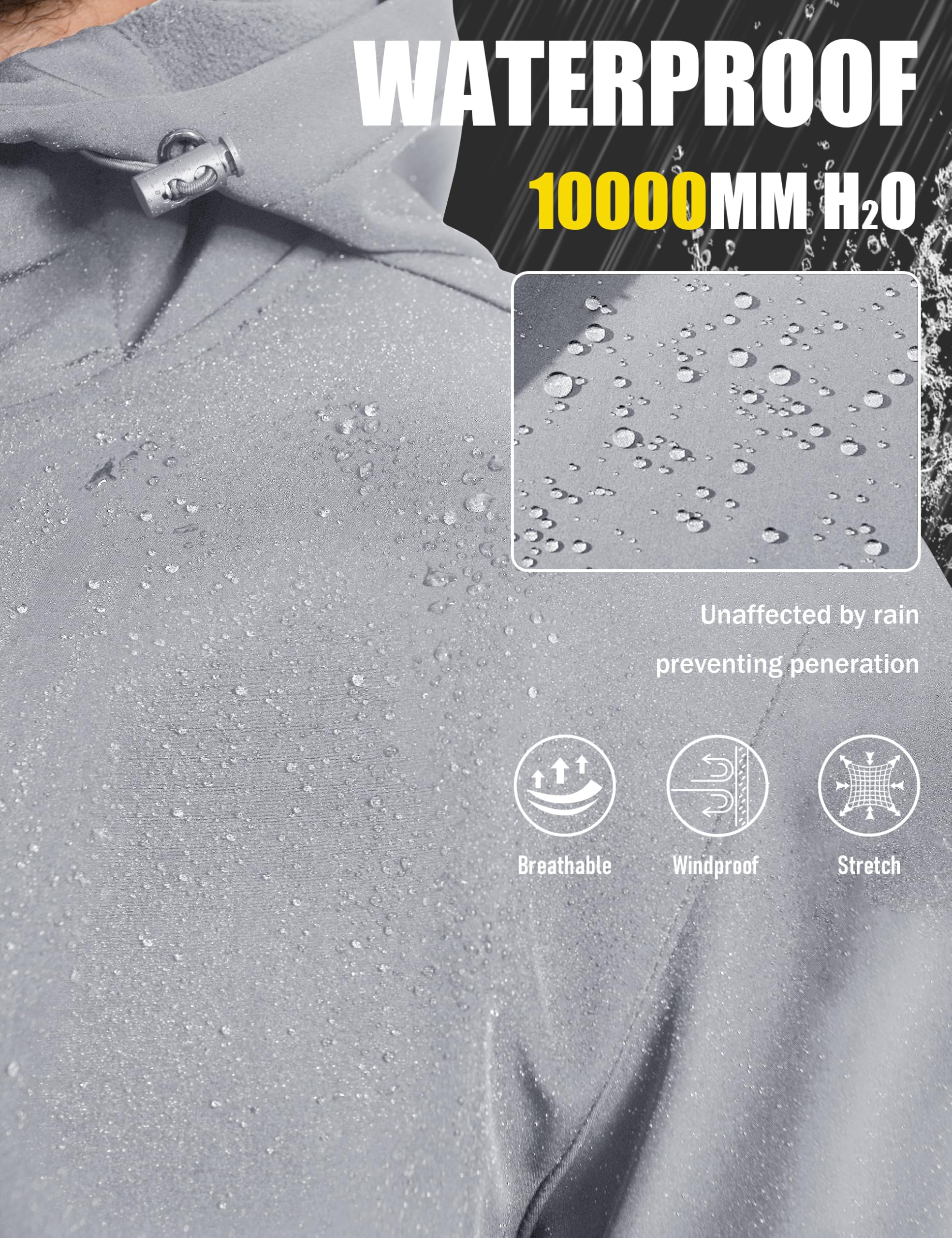 WATERPROOF & BREATHABLE - Men's rain jacket with hood is made of upgraded waterproof and breathable fabric with 10000mm H2O water repellency and 5000g/m2/24Hr breathablility, keeping you dry and comfortable, freeing you of walking in rain and snowflake