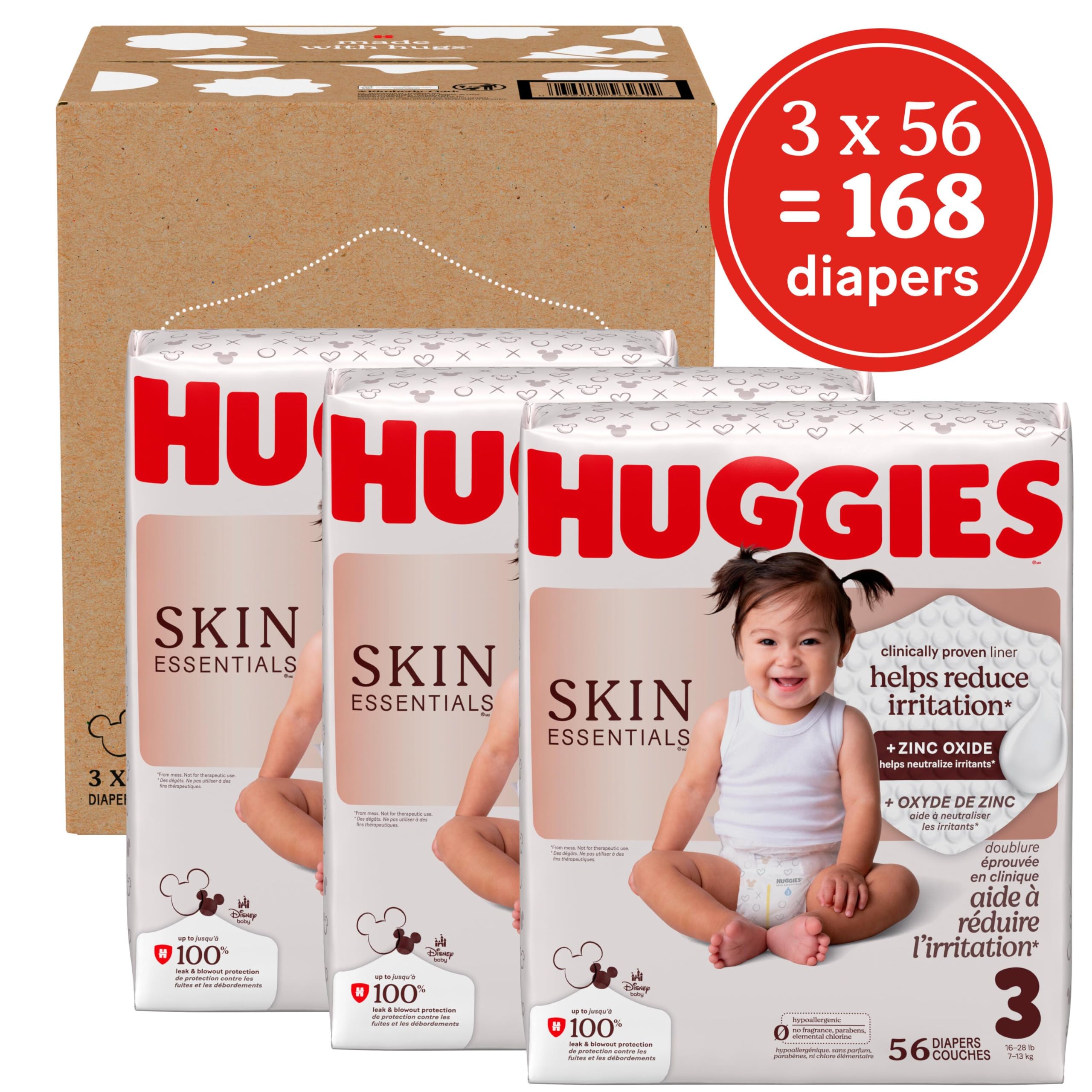 Huggies Size 3 Diapers: 168 Huggies Skin Essentials Baby Diapers (3 Packs of 56), Size 3 (16-28 lbs); packaging may vary