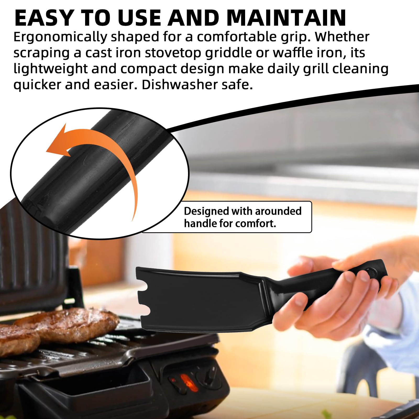 Easy to Use and Maintain - Ergonomically shaped for a comfortable grip. Whether scraping a cast iron stovetop griddle or waffle iron, its lightweight and compact design make daily grill cleaning quicker and easier. Dishwasher safe.