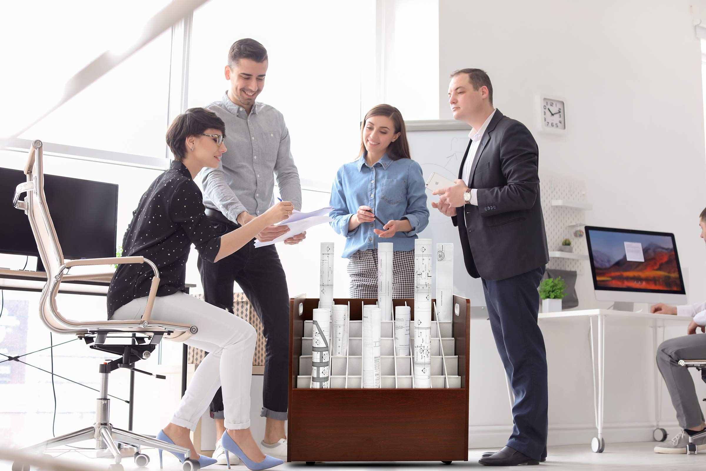 Variety in sizes & colors: Choose the Adir’s blueprint storage box that fits your needs, available in 20, 21, and 50 roll compartments. Plus, pick your preferred shade from Black, White, or Mahogany. Multiple options tailored for your blueprint station.