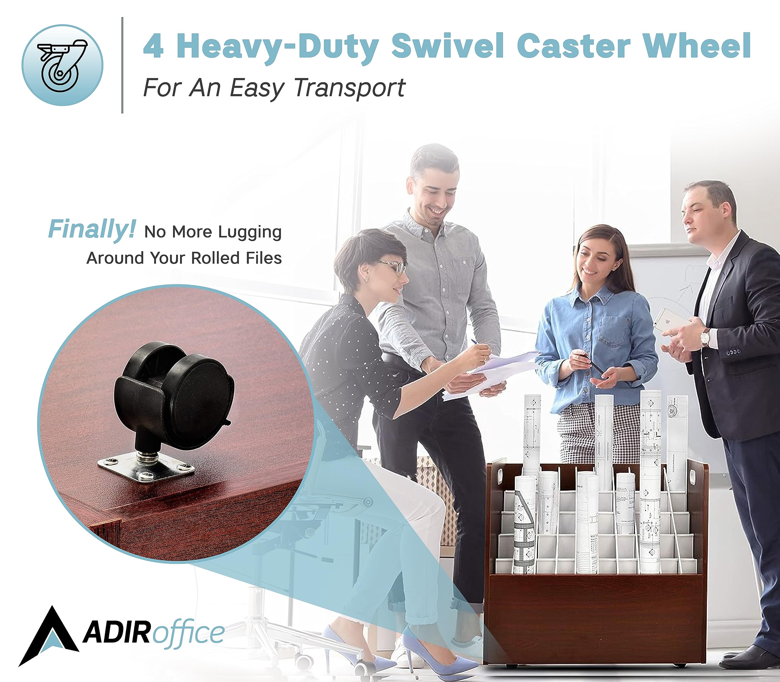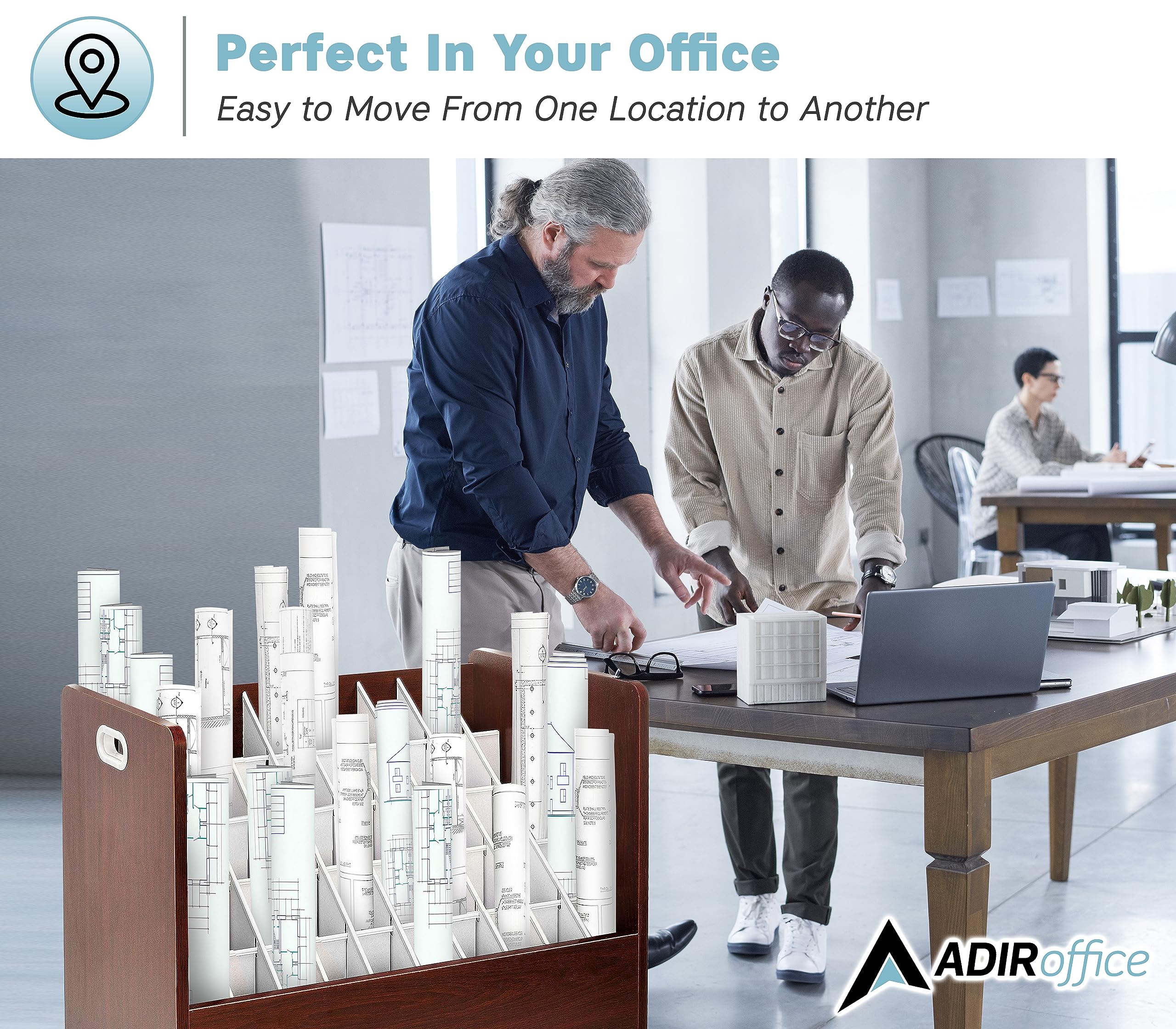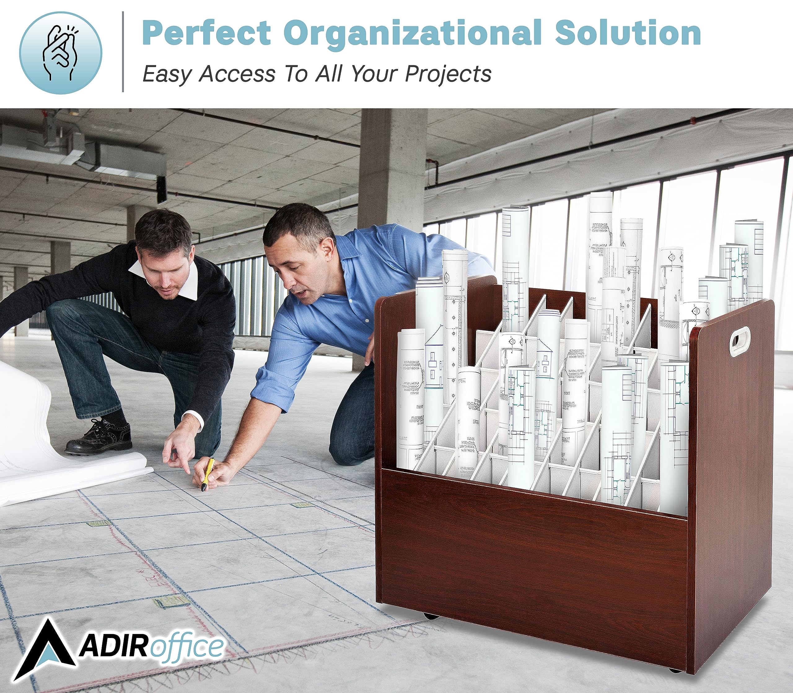 Versatile use: Adir’s rolled files organizer serves multiple purposes. It can be used as a blueprint storage cabinet, rolled poster storage, vinyl roll holder, map storage cart, architectural plan storage, and more.