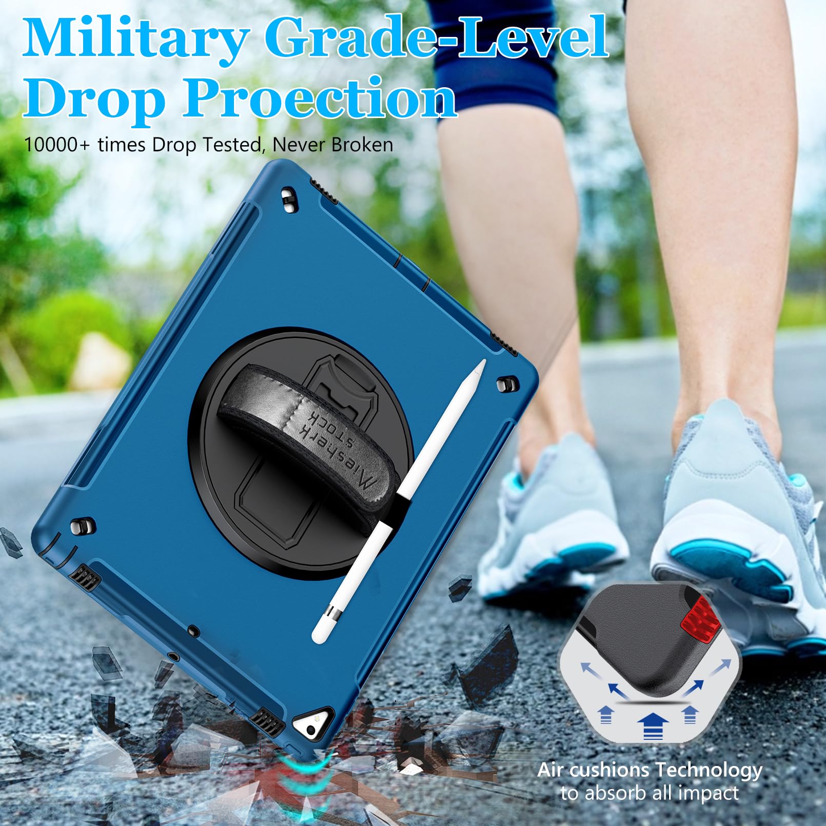 MATERIAL COMPOSITION: This case for iPad Pro 12.9 2017/2015 has a built-in screen protector(can be removed). The inner cover are Made from Hard PC and outer layer Fexible TPU. Our triple defense system has passed the Military Grade Drop Test [MIL-STD 810G-516.6] and can withstand shocks and drops from up to 15 feet, 10,000 times. These shock-absorbent layers incorporate Air Cushion Technology to effectively protect your iPad Air 11 2024 from accidental drops, bumps, and scratches
