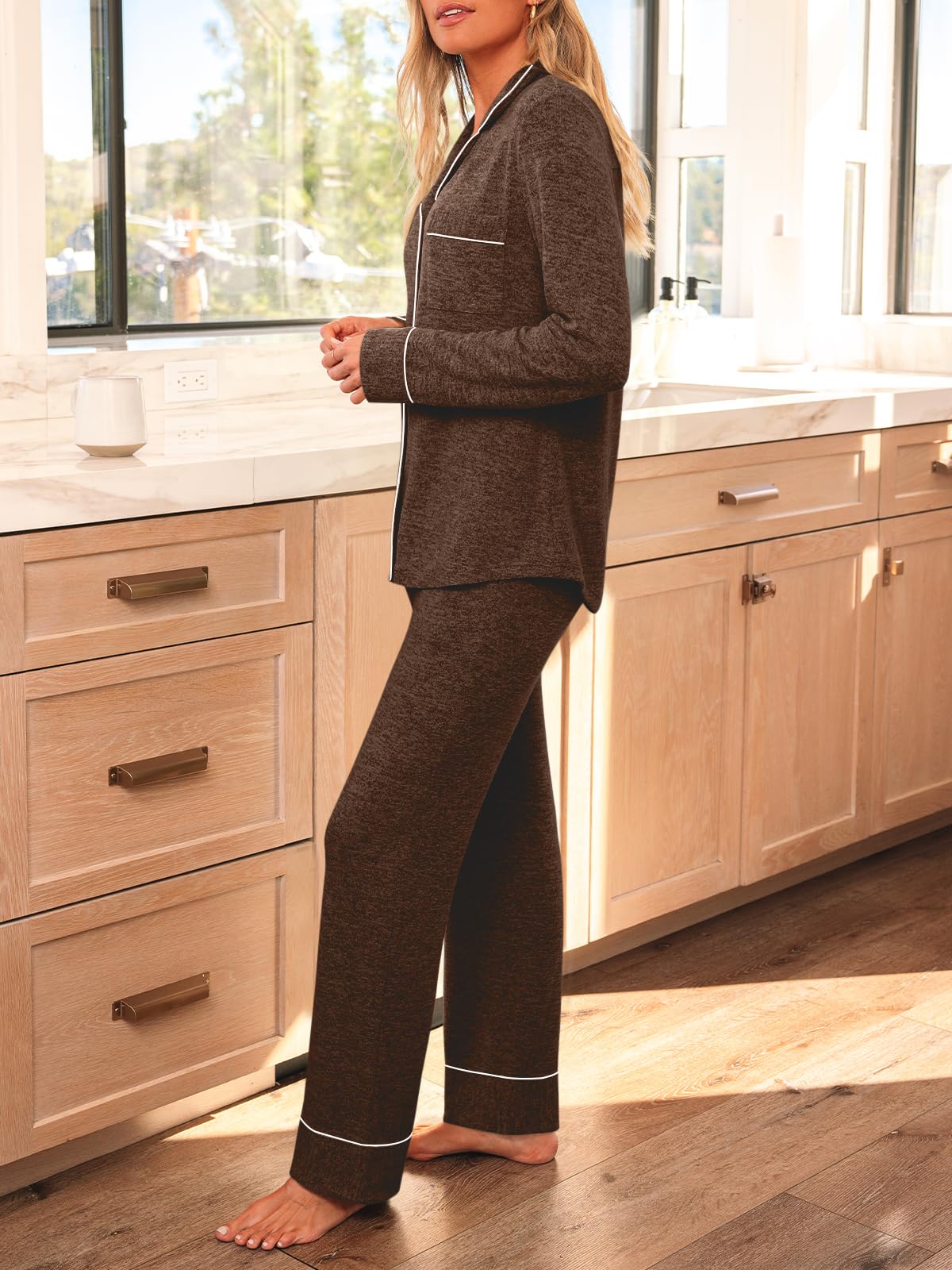 Womens Pajamas Sets Long Sleeve Lounge Warm Sleepwear 2 pieces Fall Clothes With Pockets