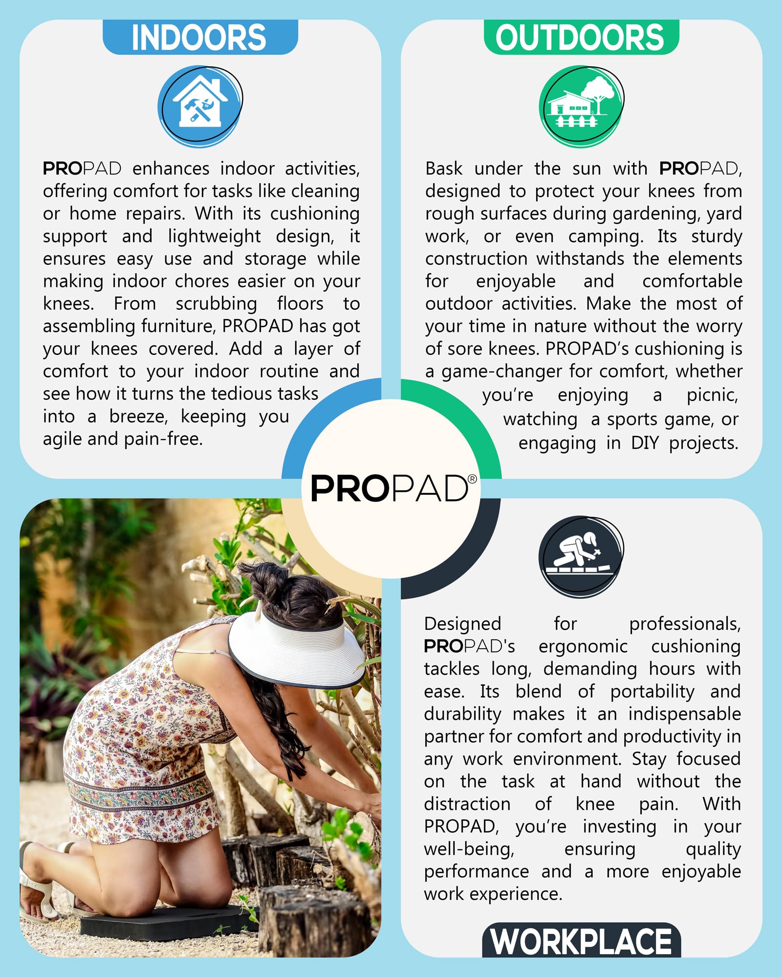 MULTI-FUNCTIONAL KNEELER - It’s great for gardening, but it is also great for baby bath time, household chores, exercise and yoga, camping, sport events, home installation and repair, auto repair, and perfect for tradesmen of all kinds including floorers, plumbers, painters, carpenters, mechanics, and especially for the gardener